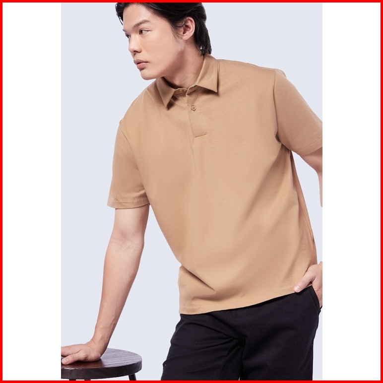 Executive Short Sleeve Polo Shirt With Button Taupe