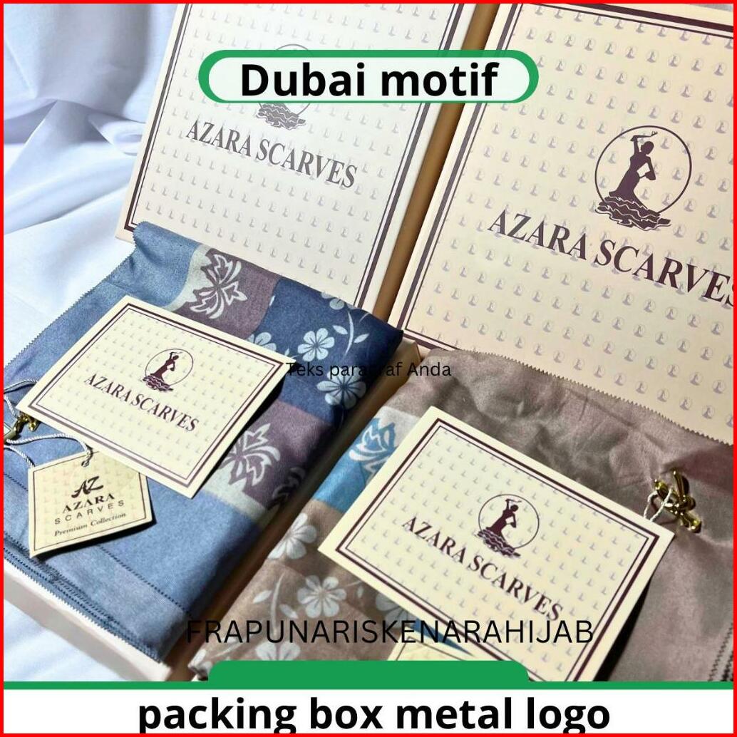 Paket 5 Box Hijab Segi Empat Free Box Azara Scarves Dubai Voal Motif Premium Metal Logo Laser Cut