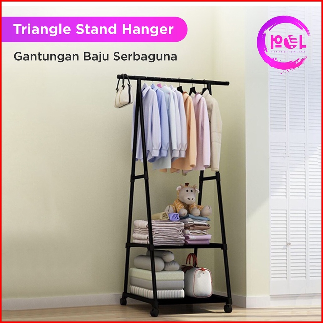 Pol Triangle Stand Hanger Plastik Kokoh Dengan Roda