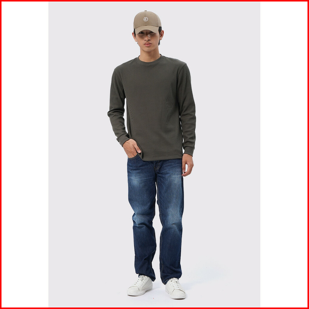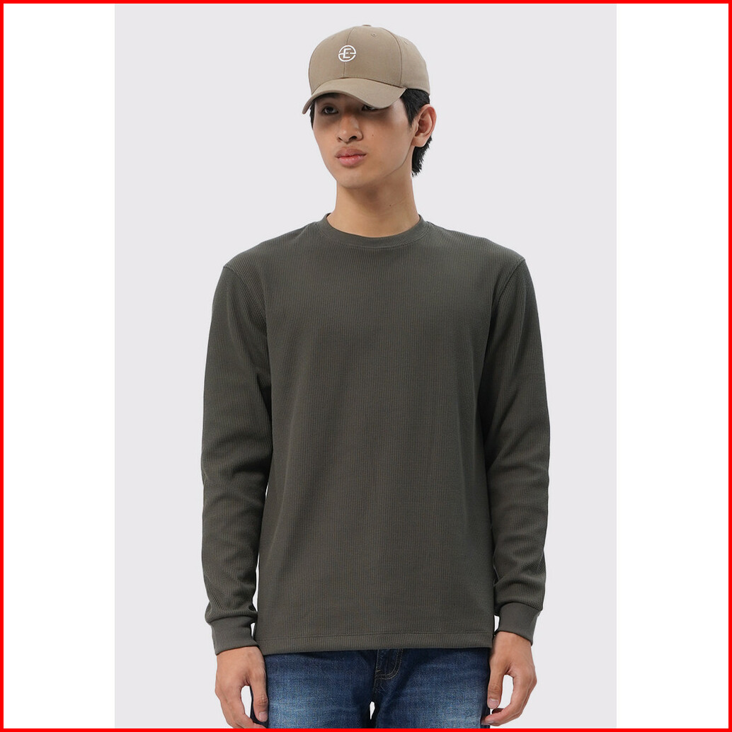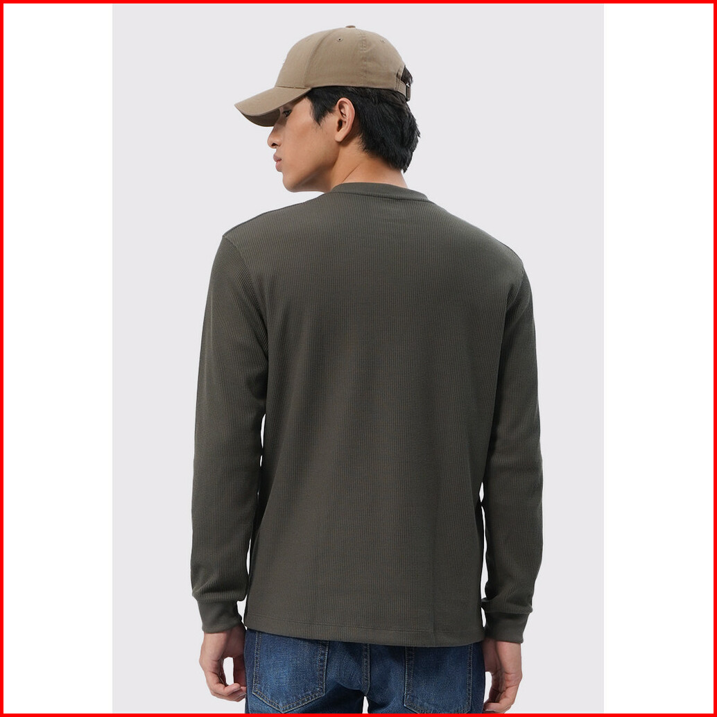 Executive Regular Fit Long Sleeve Waffle T-shirt Olive