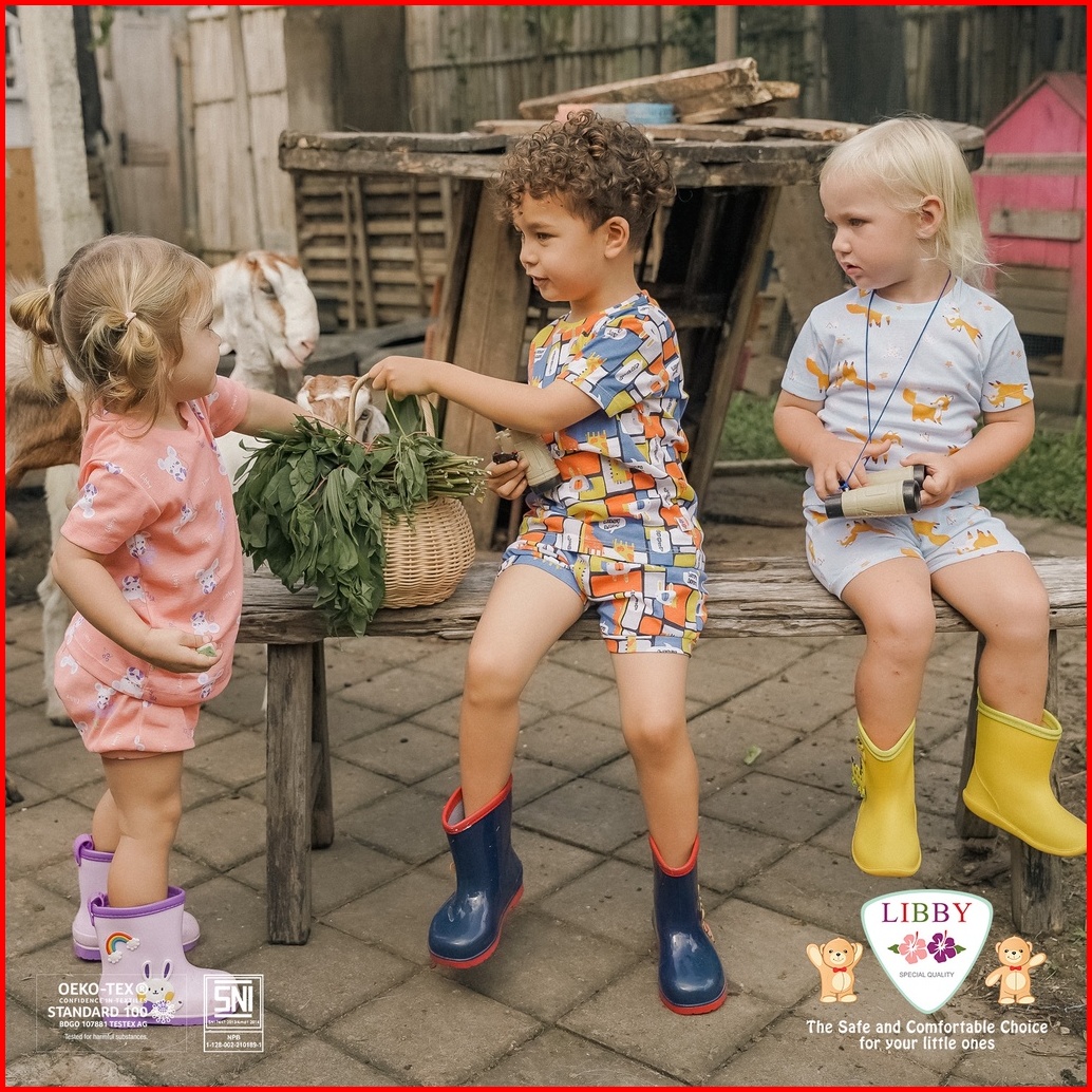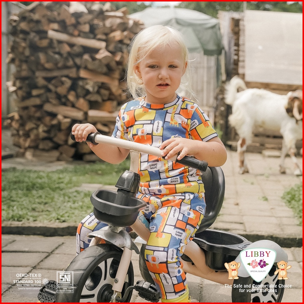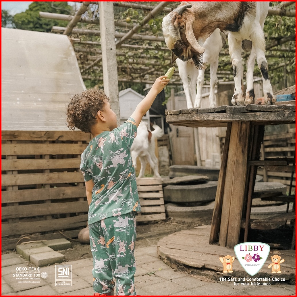 Libby Setelan Oblong Cotton Rib Pendek - Celana Panjang Series Boy Motif Happy Farm 1stel