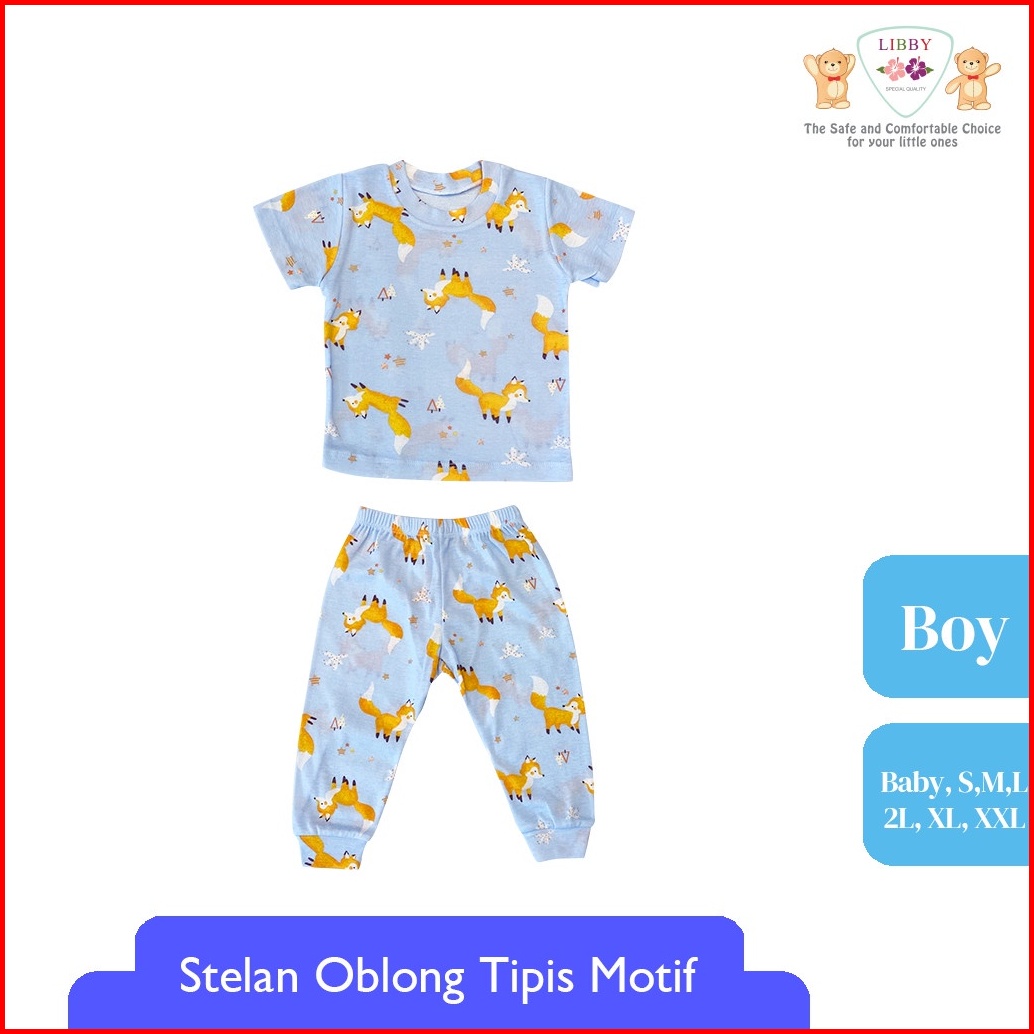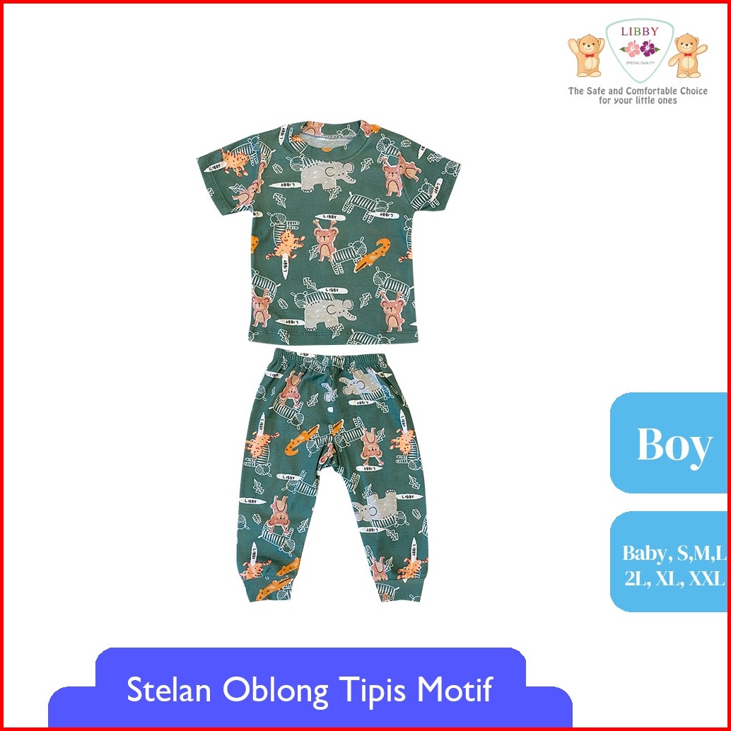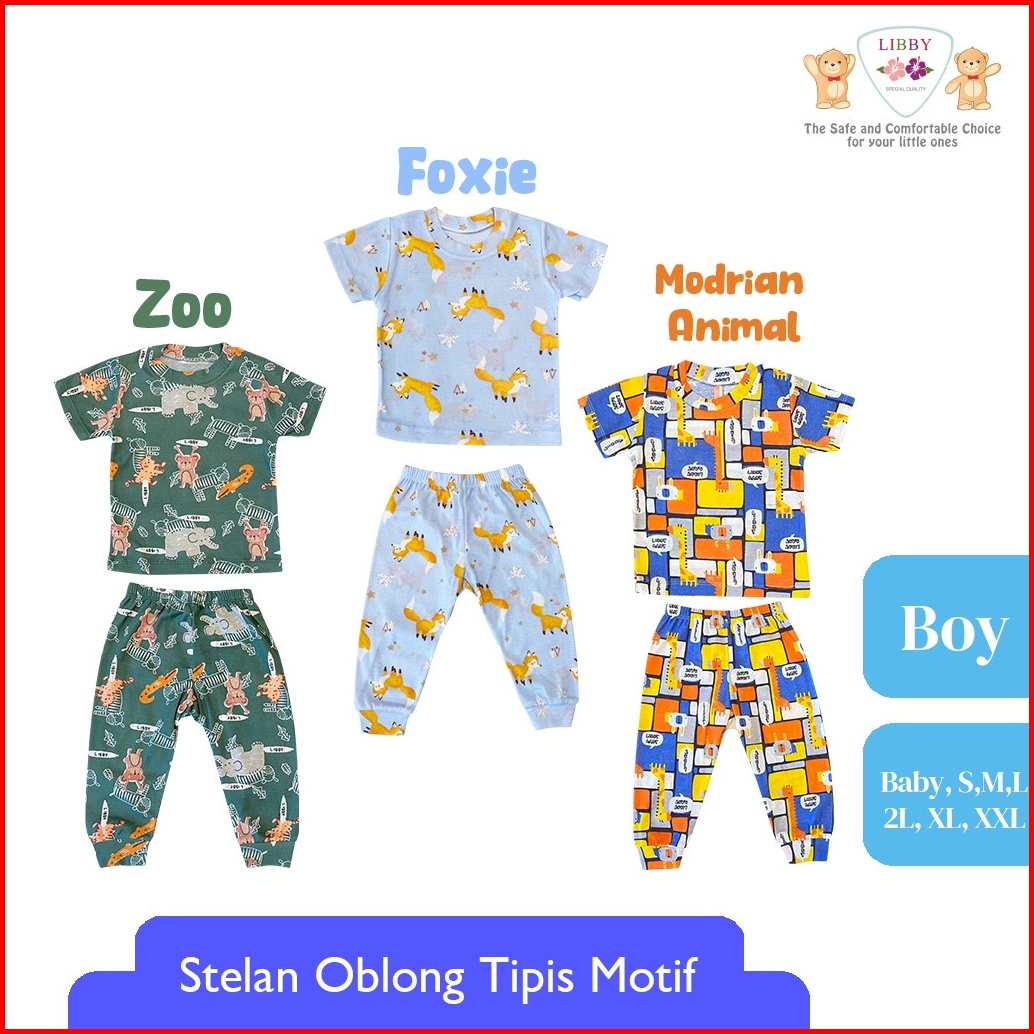 Libby Setelan Oblong Cotton Rib Pendek - Celana Panjang Series Boy Motif Happy Farm 1stel