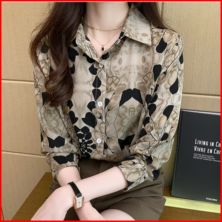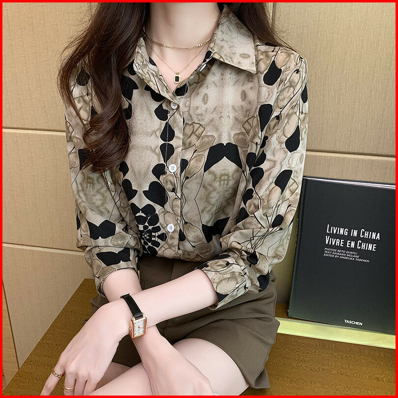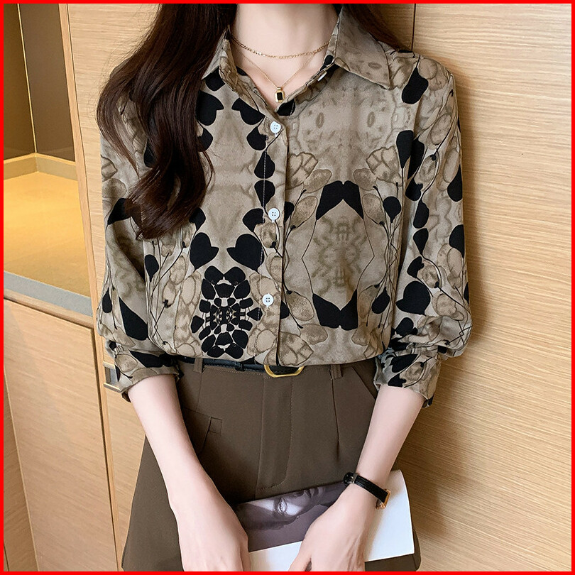 High Quality Chiffon Fabric Fashion Korean Style Khaki Casual Travel Long Sleeve Loose Women S Shirt