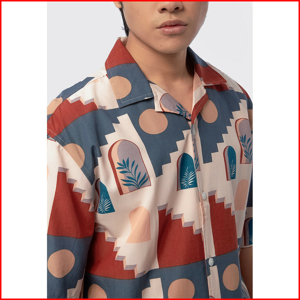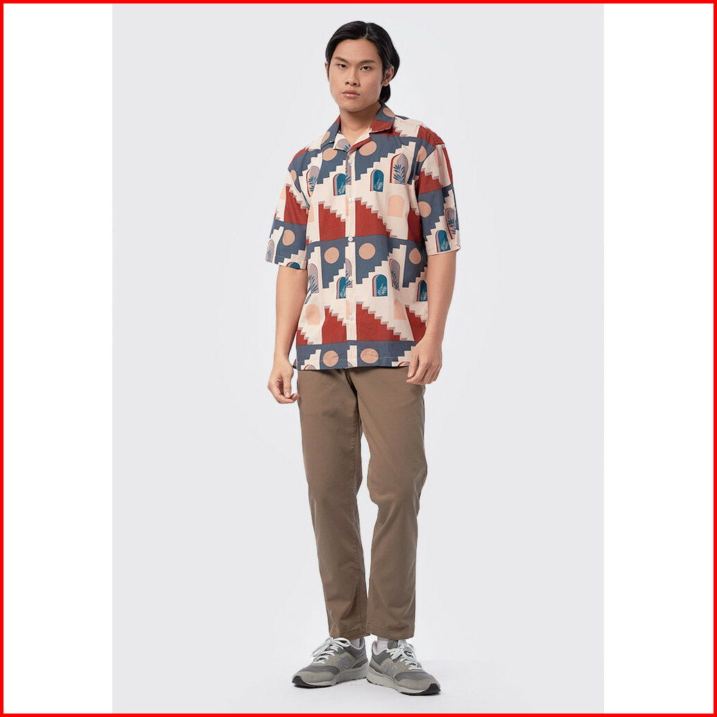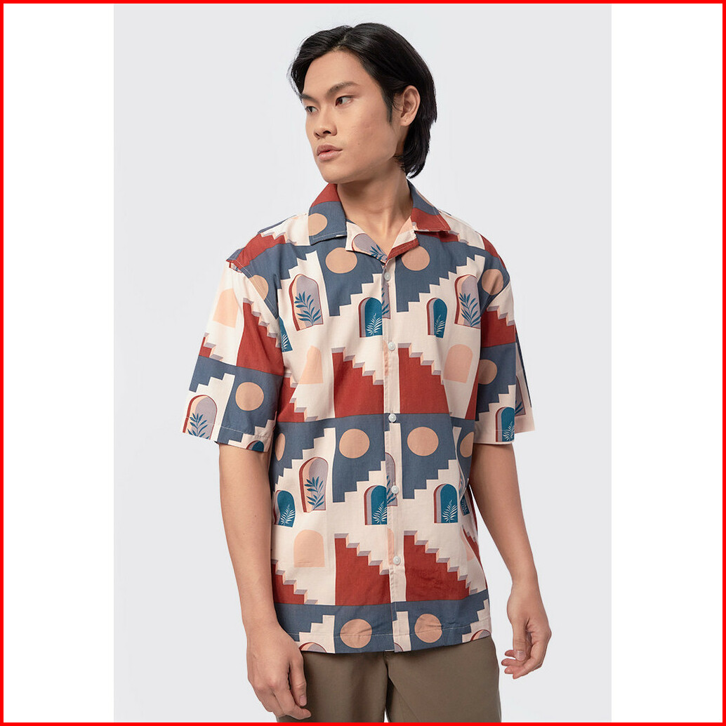 Executive Relaxed Fit Printed Resort Shirt Ecru