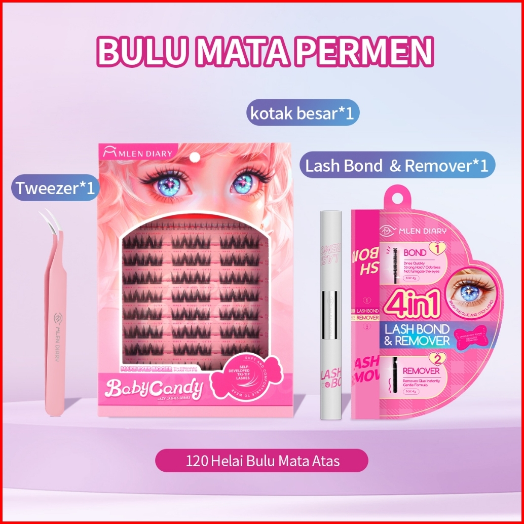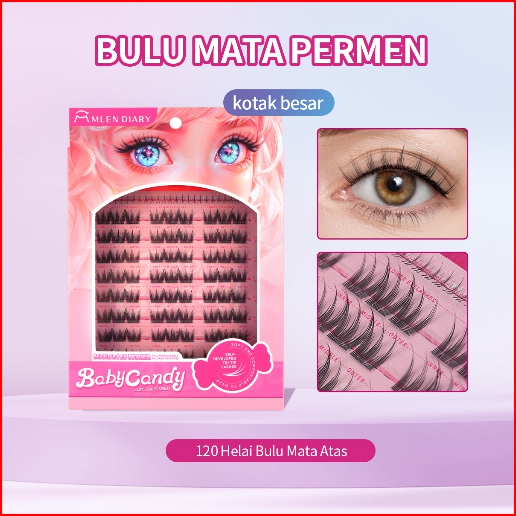 Mlen Diary Bulu Mata Baby Candy Eyelash Manga Permen Desain Tri-tip Bulu Mata Palsu Panjang 10-13mm Bulu Mata Eyelash Ex