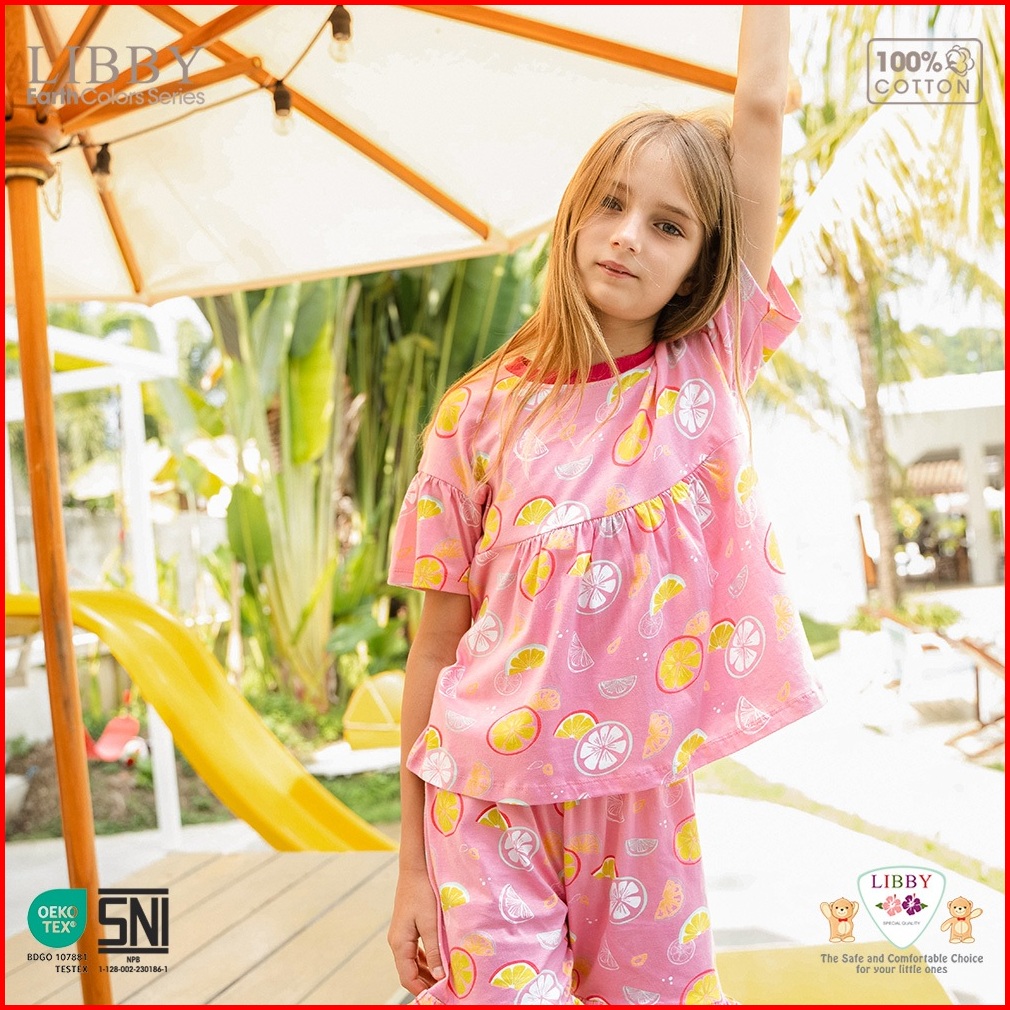 Libby Setelan Anak Besar Perempuan Kaos Peplum Katun Usia 6 - 14 Tahun 1 Stel Kai Set Girl