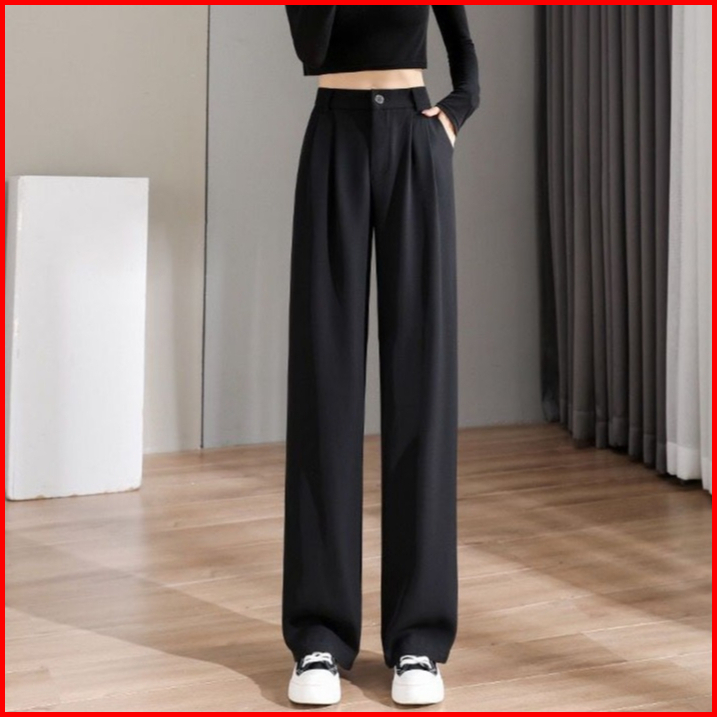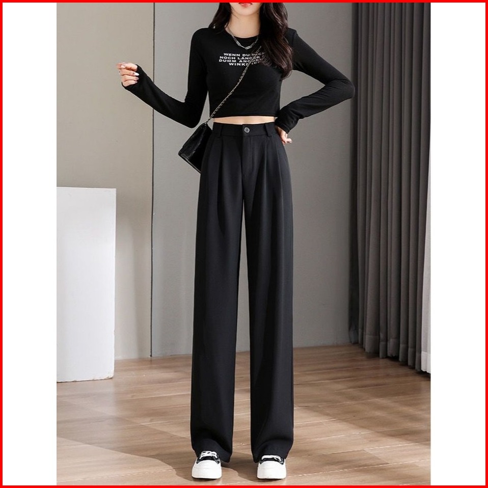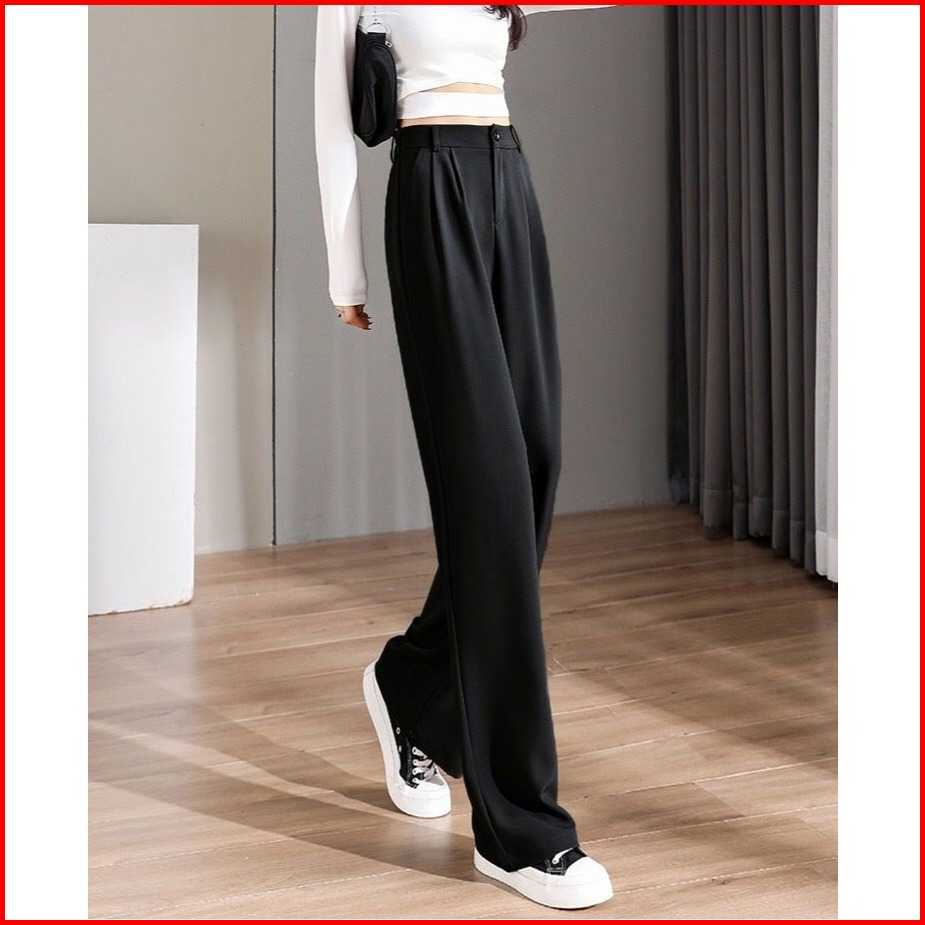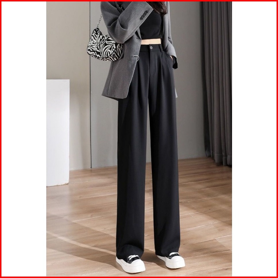 Celana Kulot Longgar Wanita Pinggang Tinggi Korea Baru Hitam Abu Abu Coklat Puith
