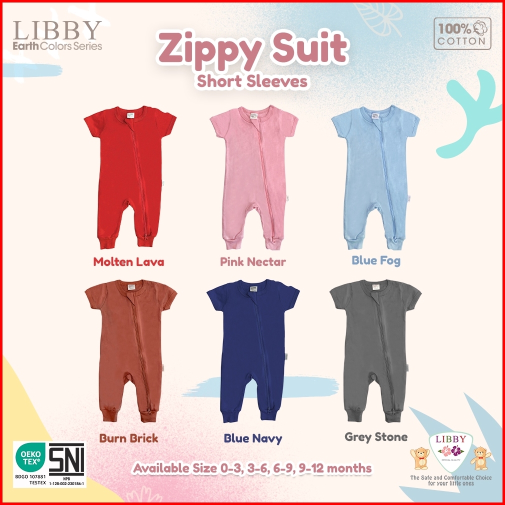 Libby Sleepsuit Baju Tidur Bayi Lengan Pendek Laki-laki Perempuan 0-12bln- Zippy Suit 1 Pcs Pack - Sleepsuit Playsuit Ju