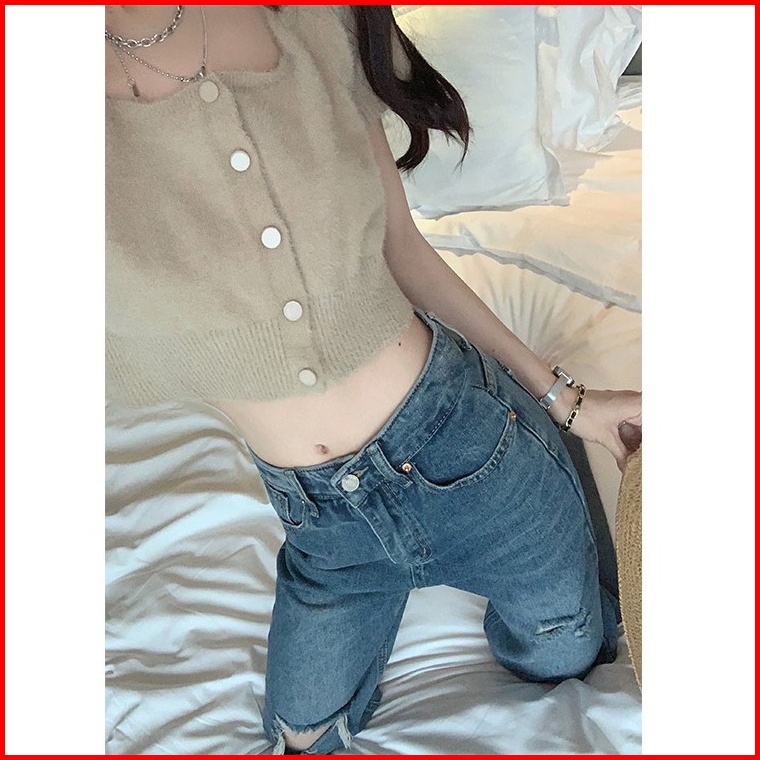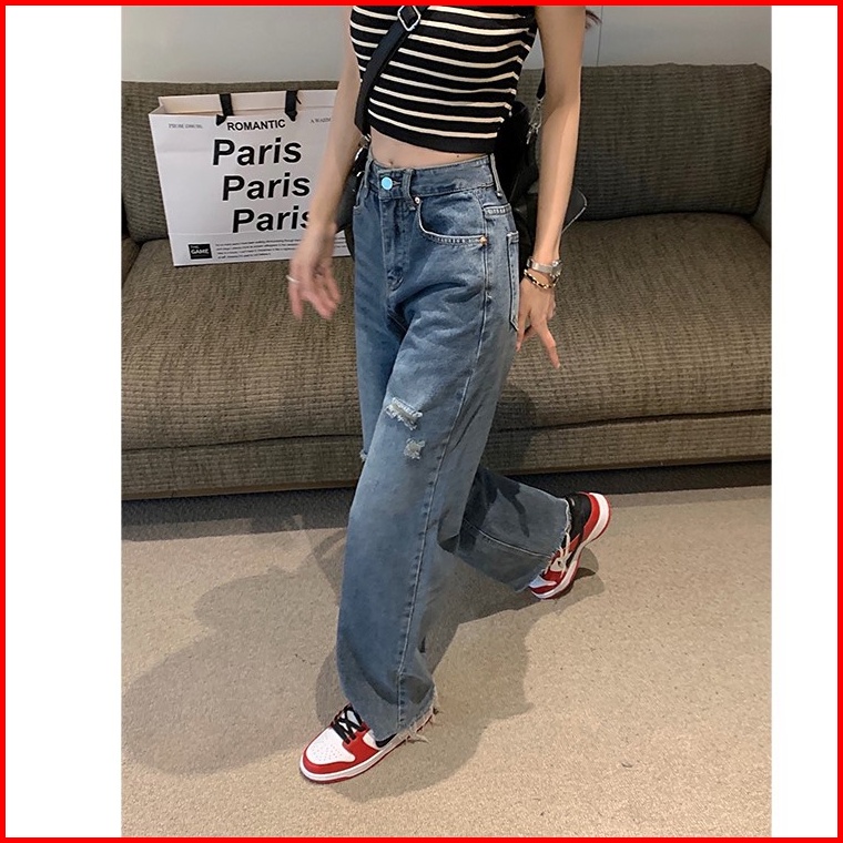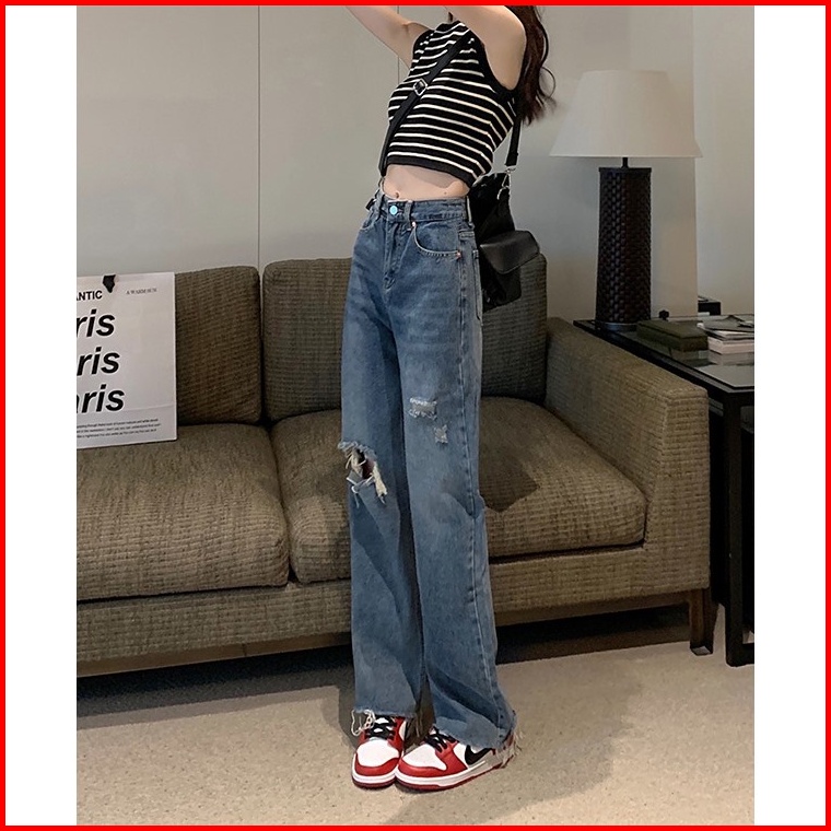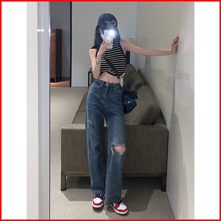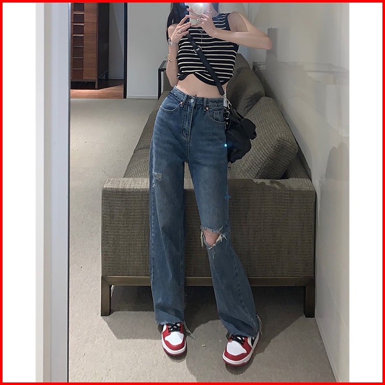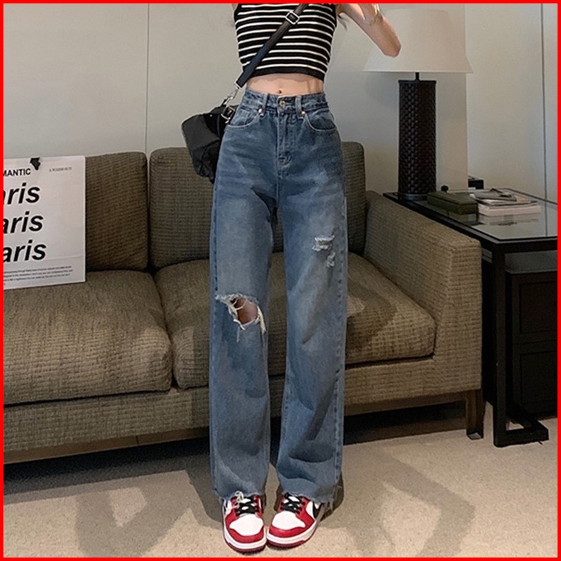 Import Premium Denim Highwaist Loose Robek Rawis Celana Jens Wanita