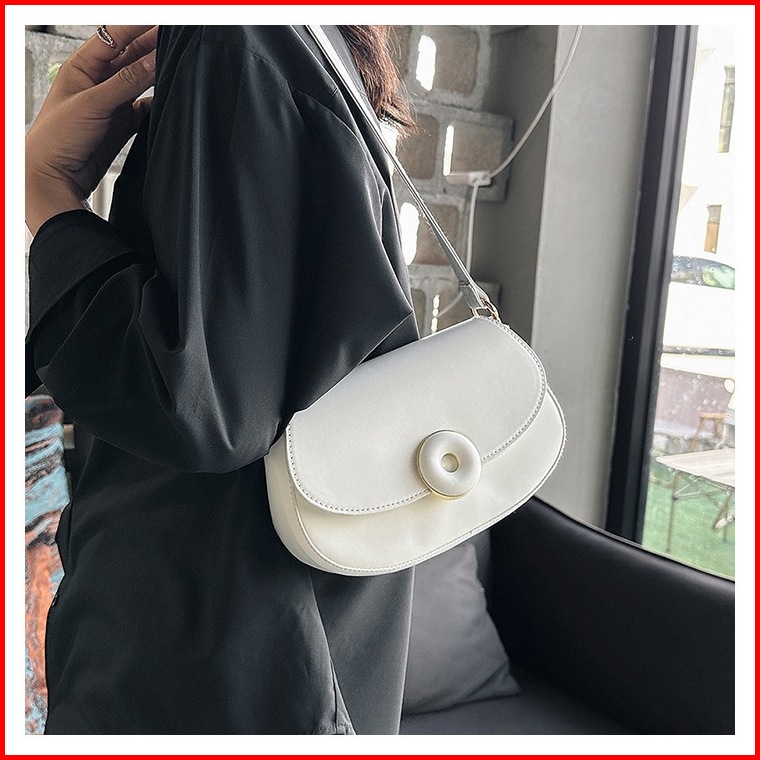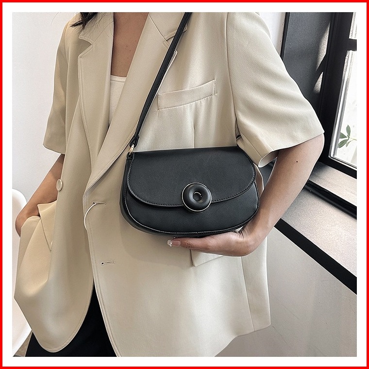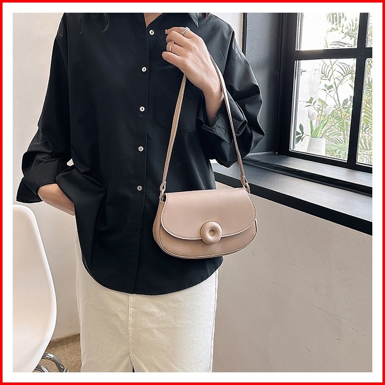 Ready Tas Pelana Baru Tas Selempang Bahu Tunggal Kasual Tas Selempang Warna Solid Tas Tangan Rekreasi Wanita Retro Gespe