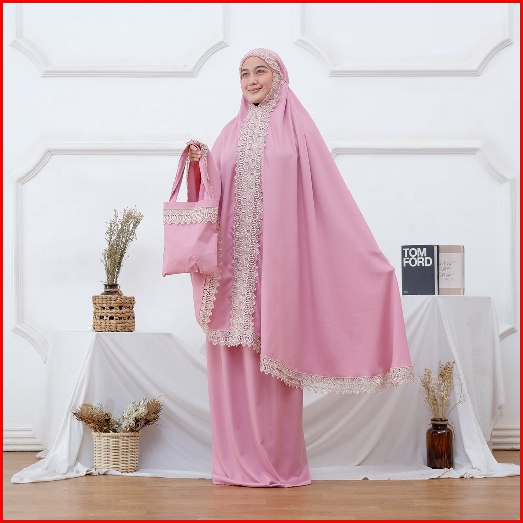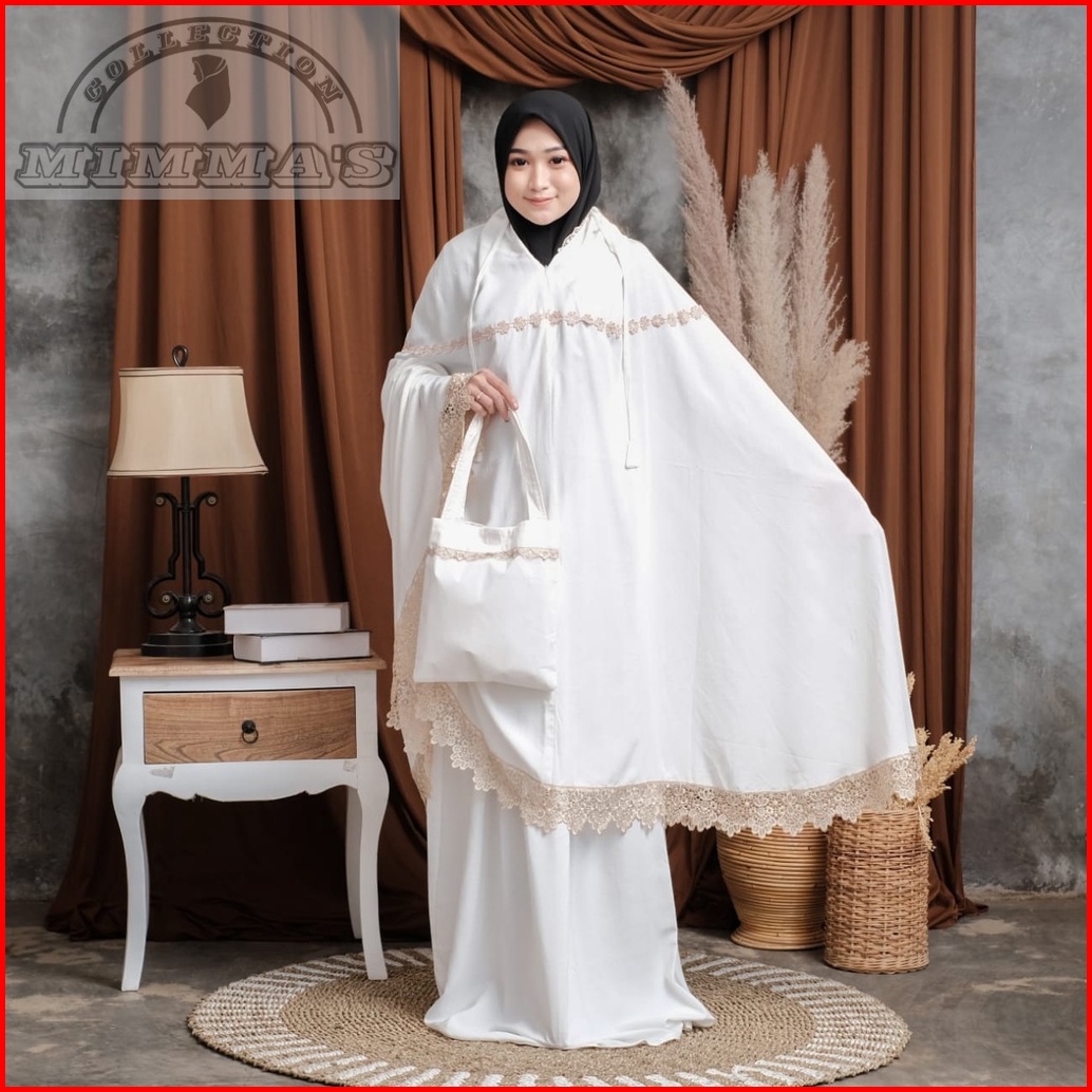 Mukena Dewasa Prada Jumbo Renda 2 In1 Mukena Putih Katun Premium Terbaru 2024