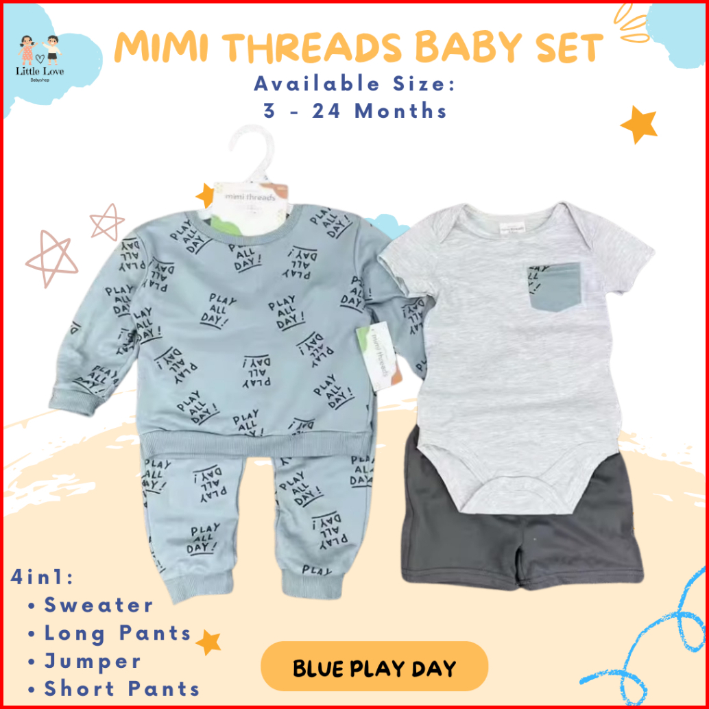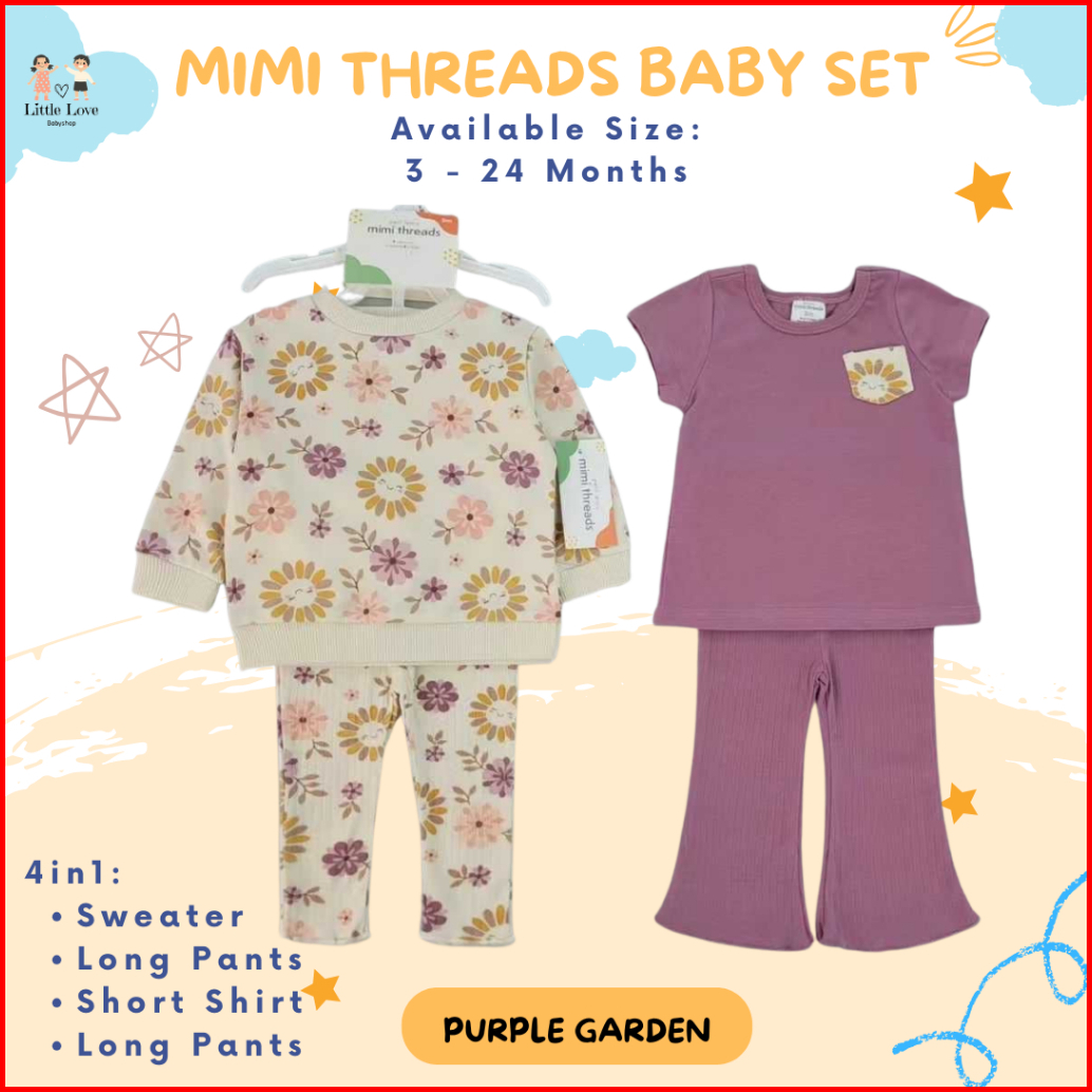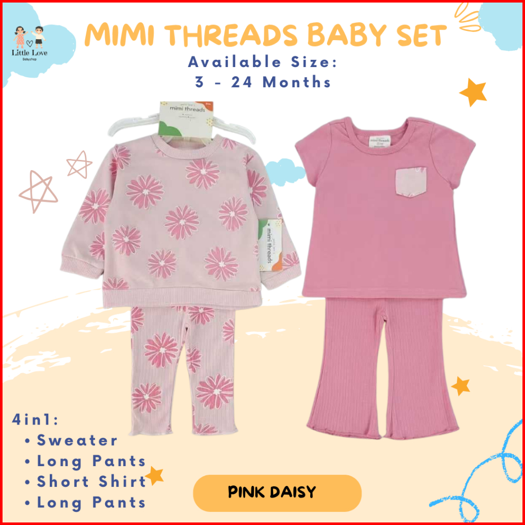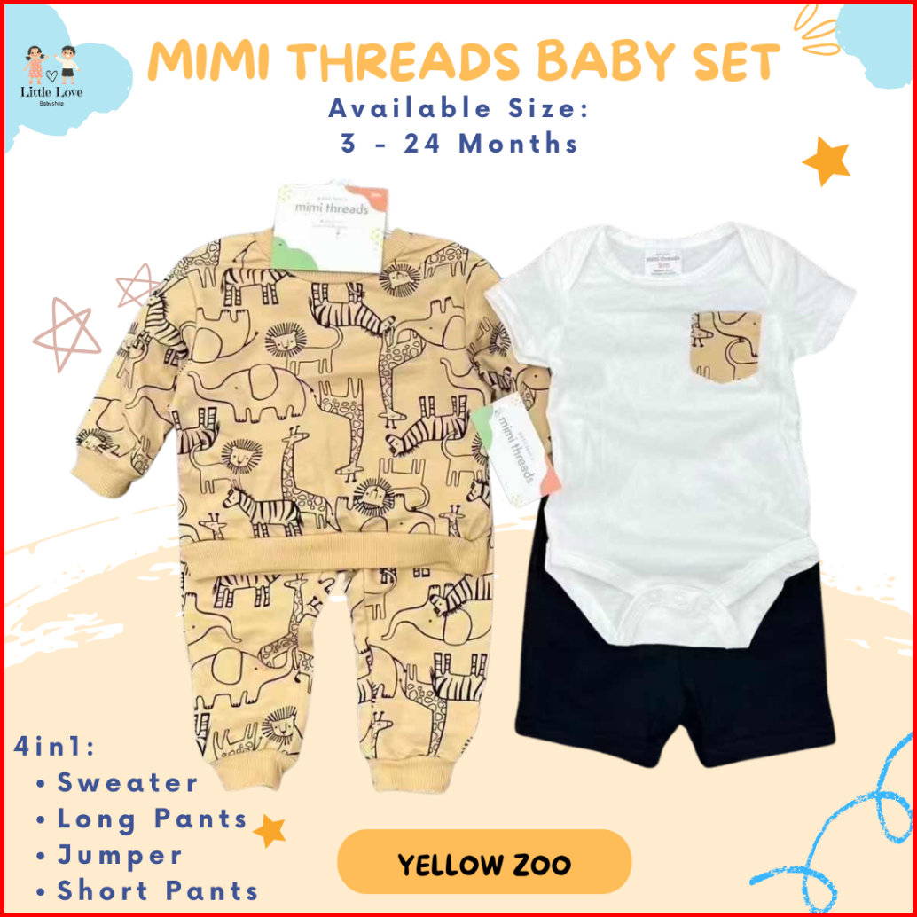 Little Love Baby Mimi Thread 4in1 Set Boy Girl Unisex Sweater Set Baju Pergi Anak Cewek Cowok Unisex Bayi Set Baby Kado