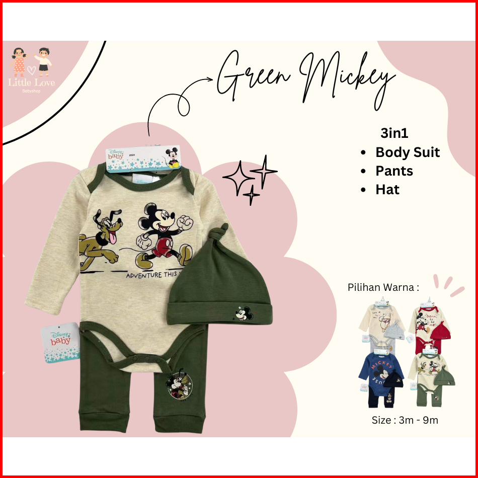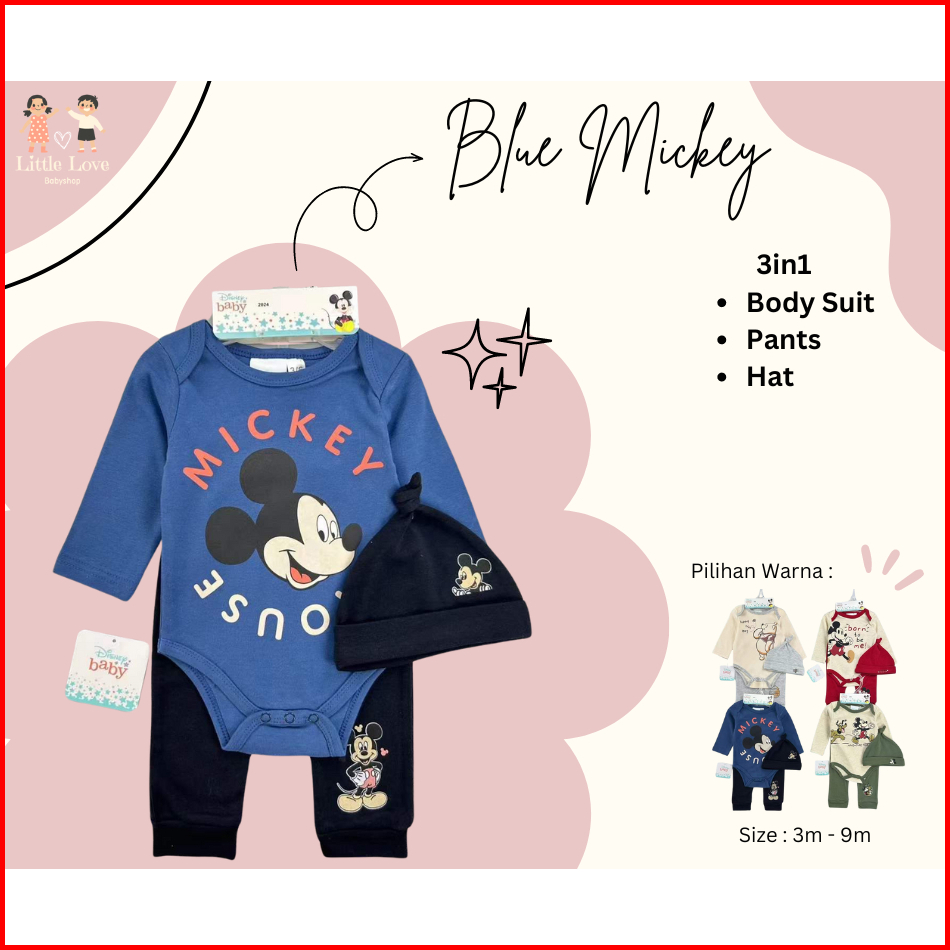 Baju Bayi Set Disney Baby Mickey Winnie The Pooh Jumper Bodysuits Pants Hat Baju Set Kado Lahiran 3-9m