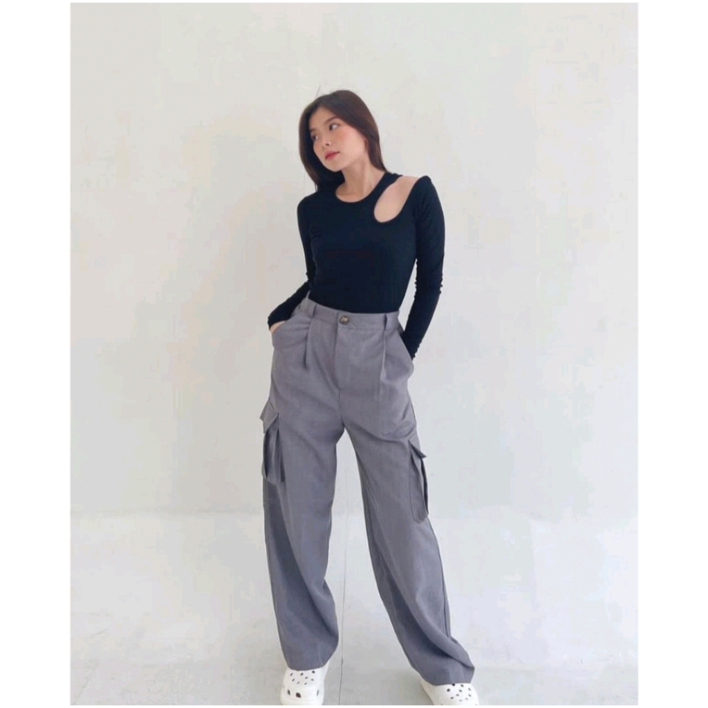 (Gratis Ongkir) Celana Cargo Pants | Celana Kargo Drill | Kulot | Wide Leg Pants |