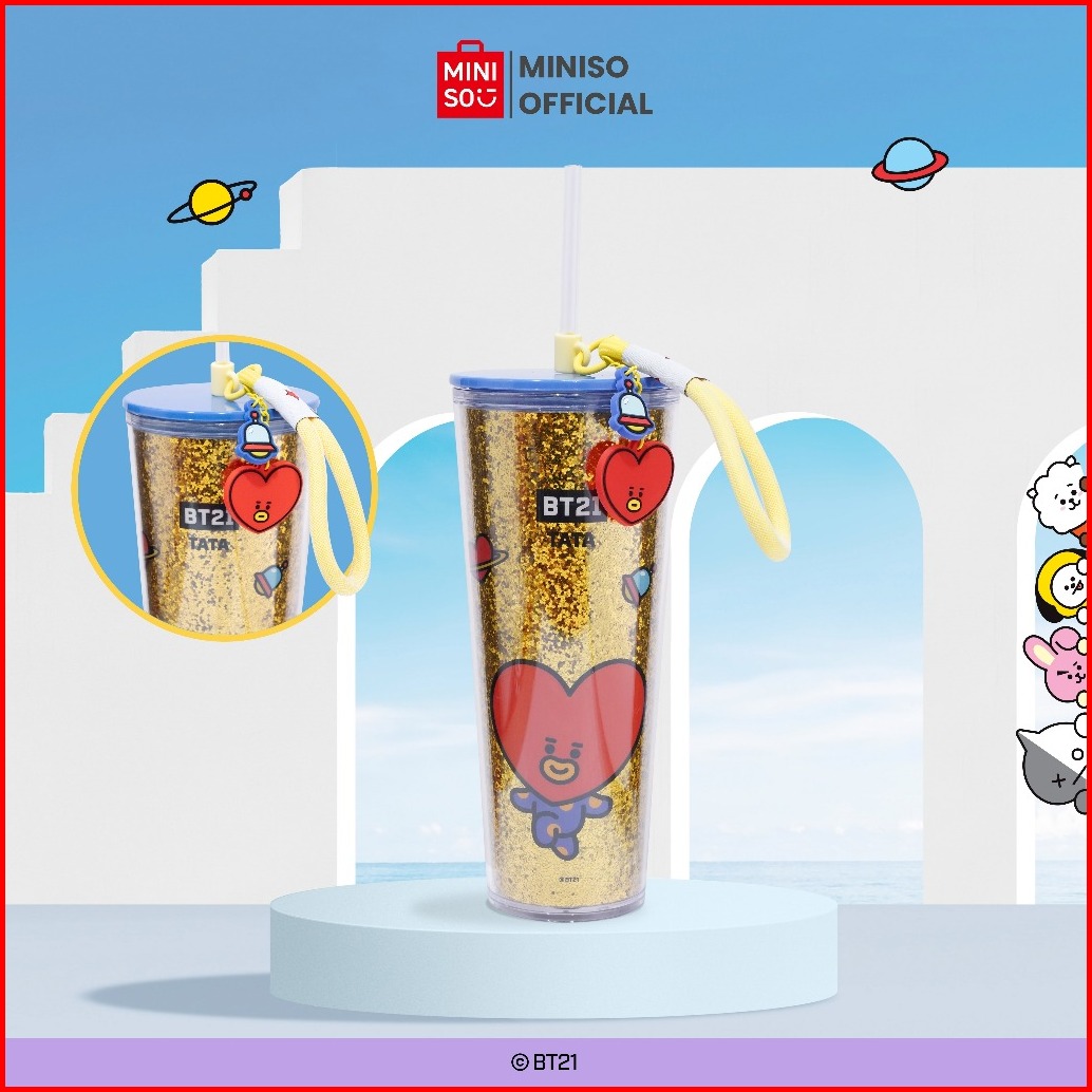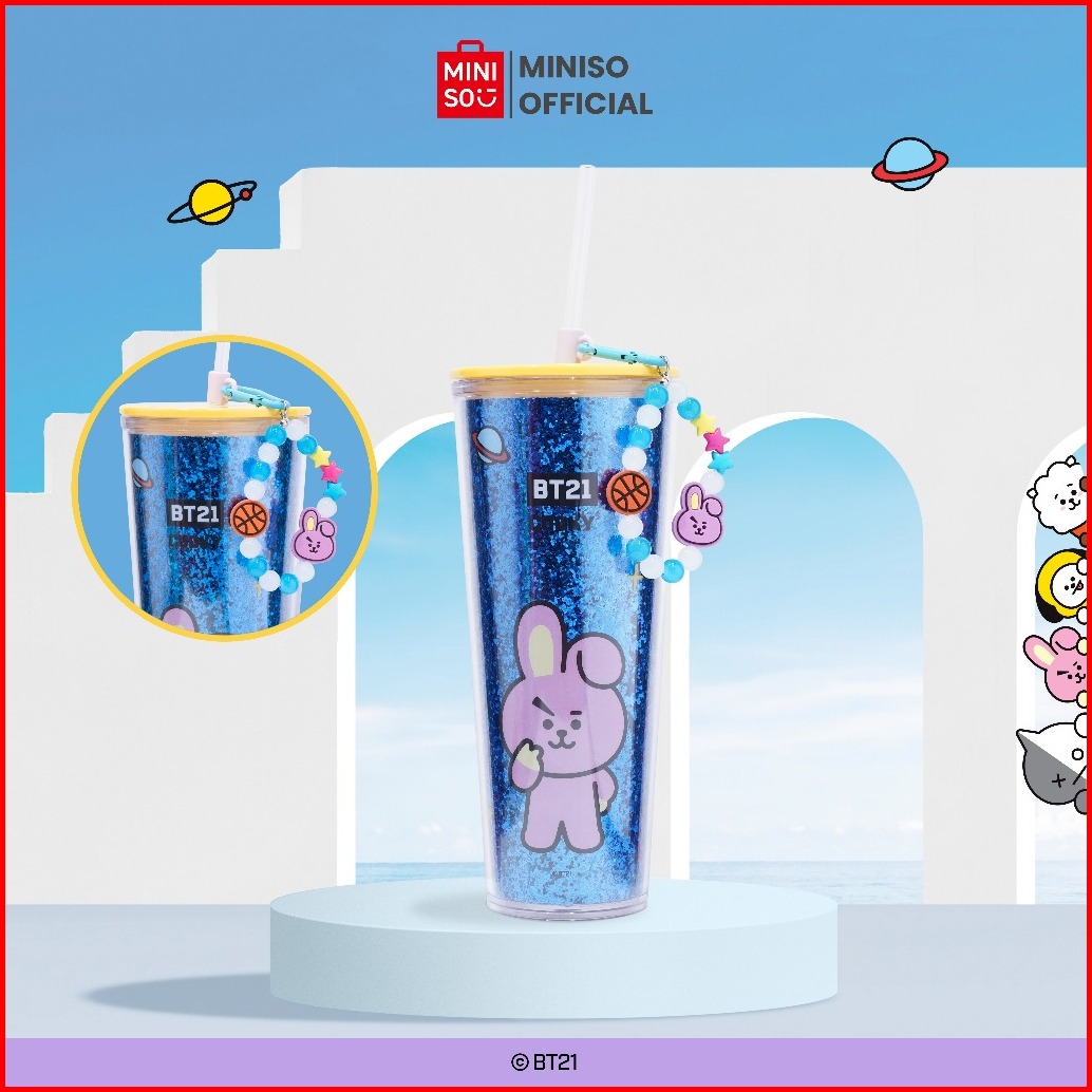Miniso X Bt21 Collection Plastic Tumbler Cangkir Minum Double Wall With Straw Decoration Straw Cup 800ml
