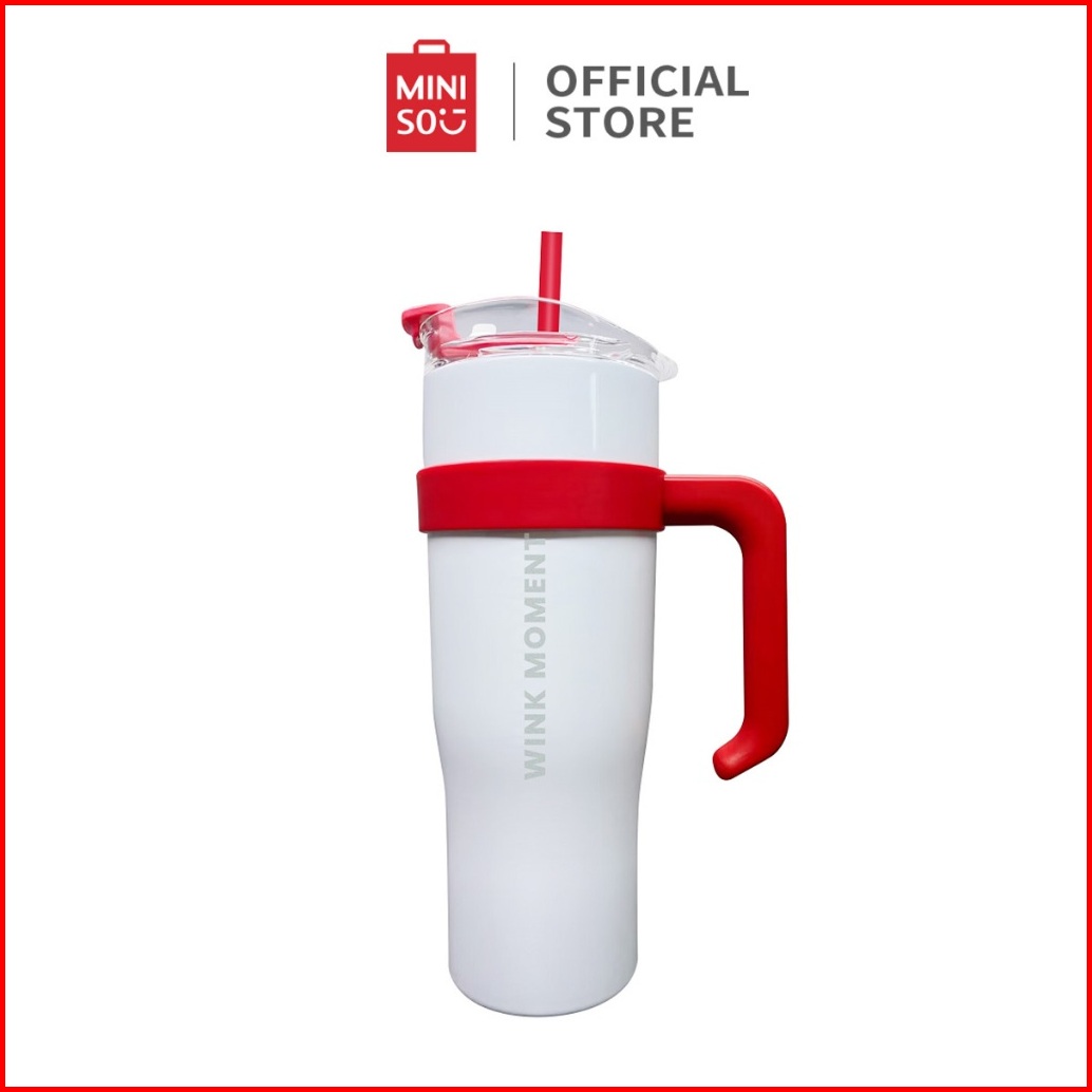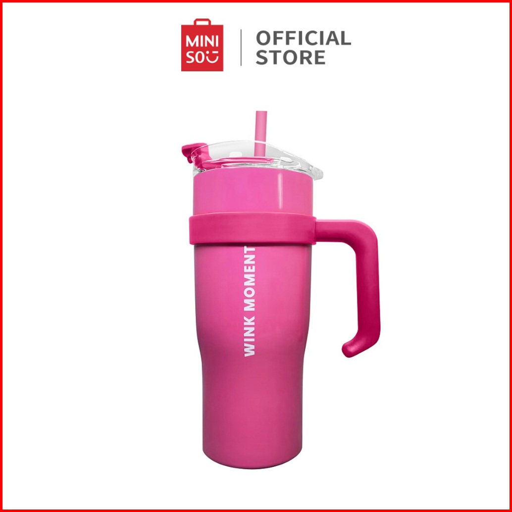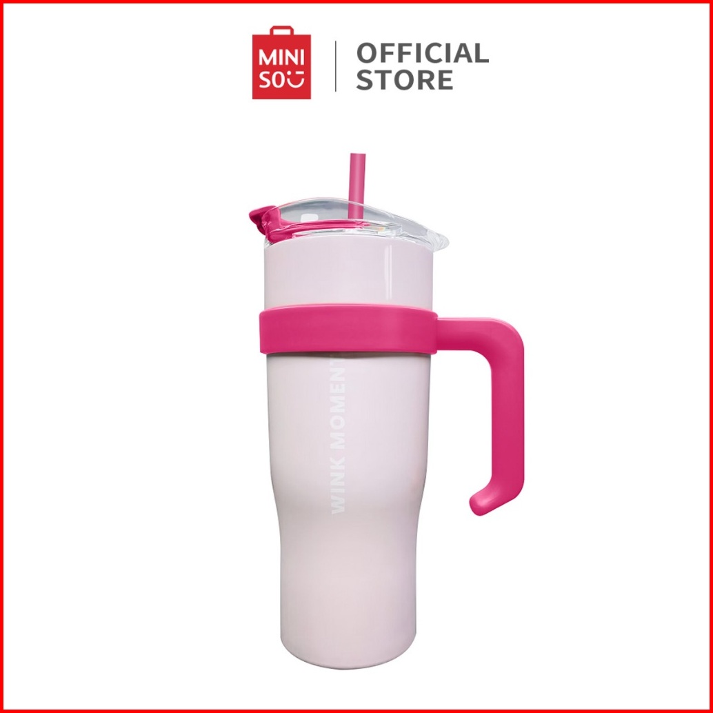 Miniso Gelas Baja Warna Solid Dengan Sedotan Steel Tumbler With Straw Gelas Minum Olahraga Botol Baja Tahan Karat 1600ml