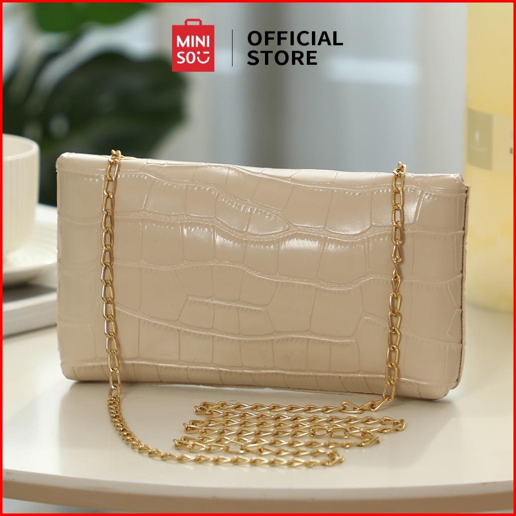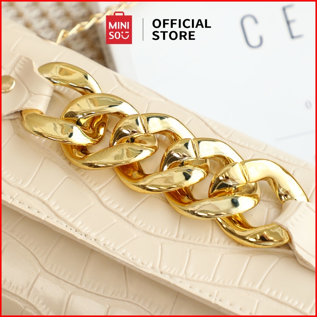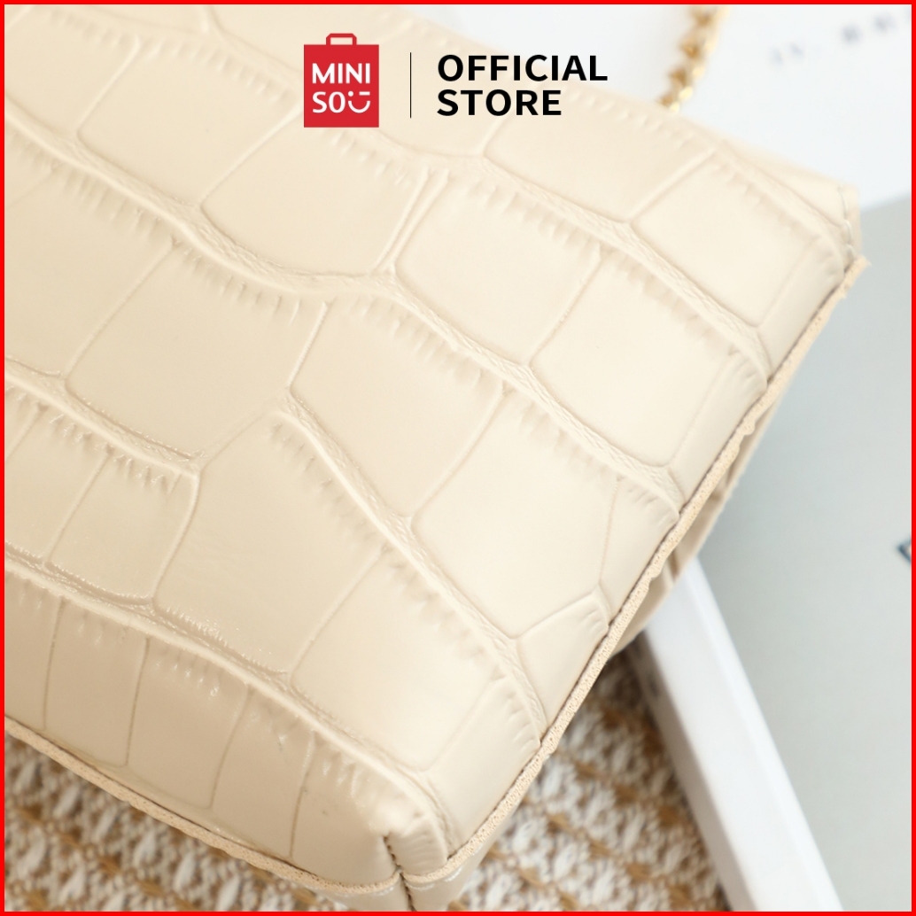 Miniso Tas Selempang Crossbody Bag With Chain Tutup Pola Batu Dekorasi Tautan Perangkat Keras Mode Dompet Wanita