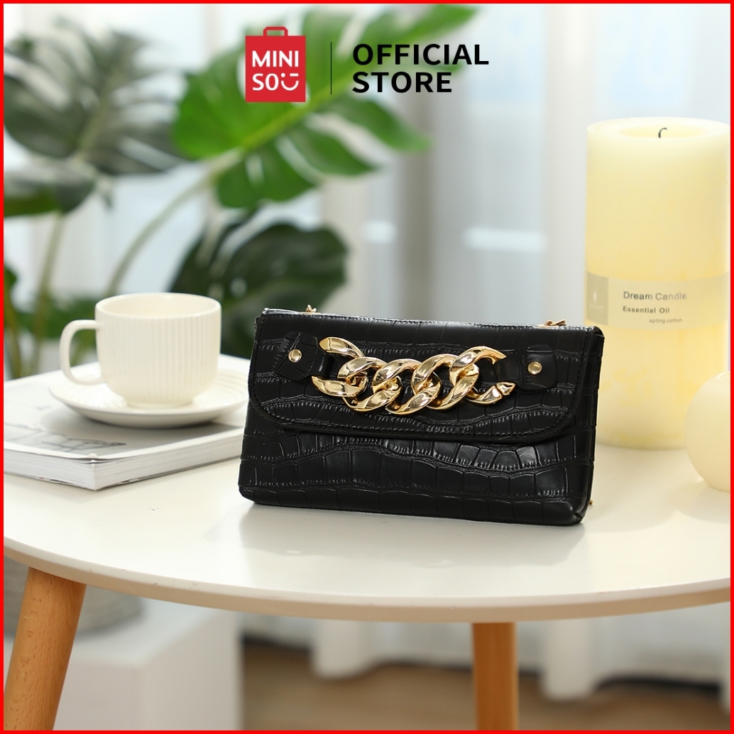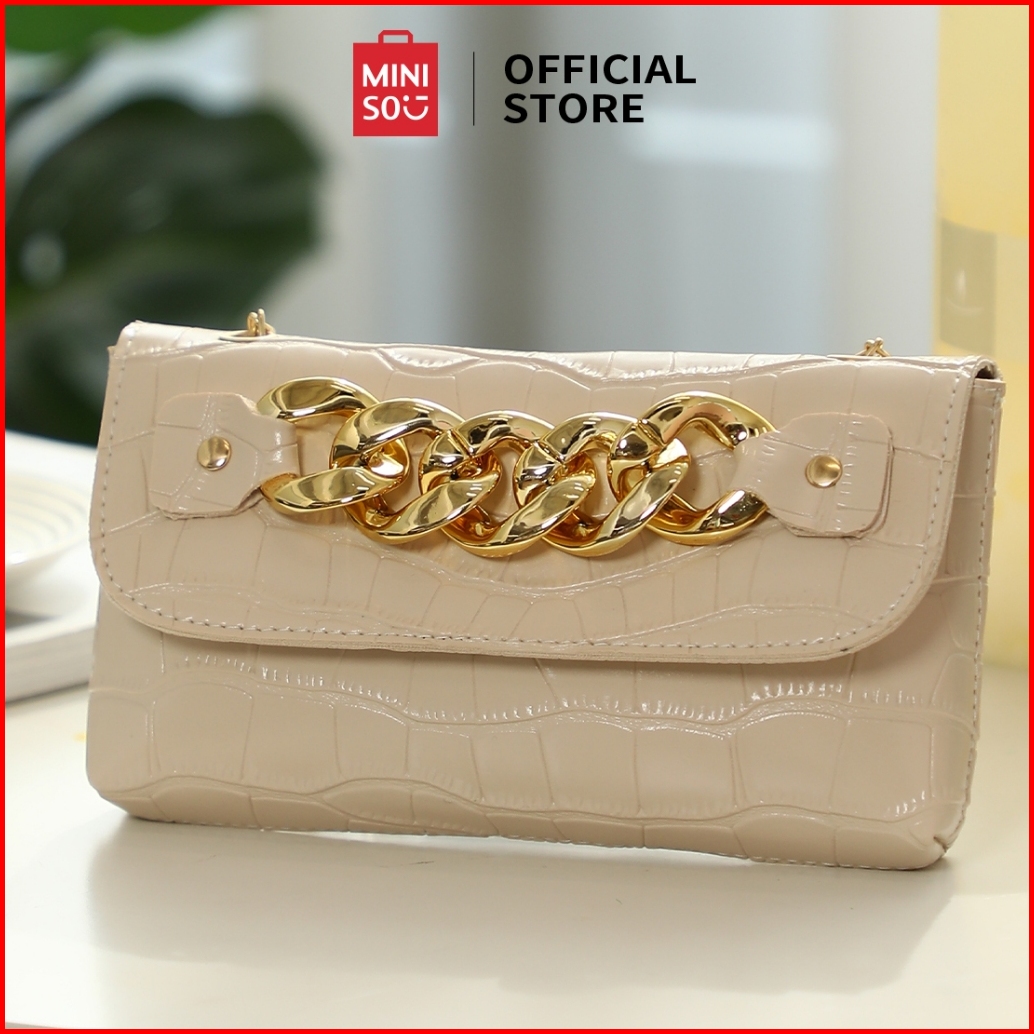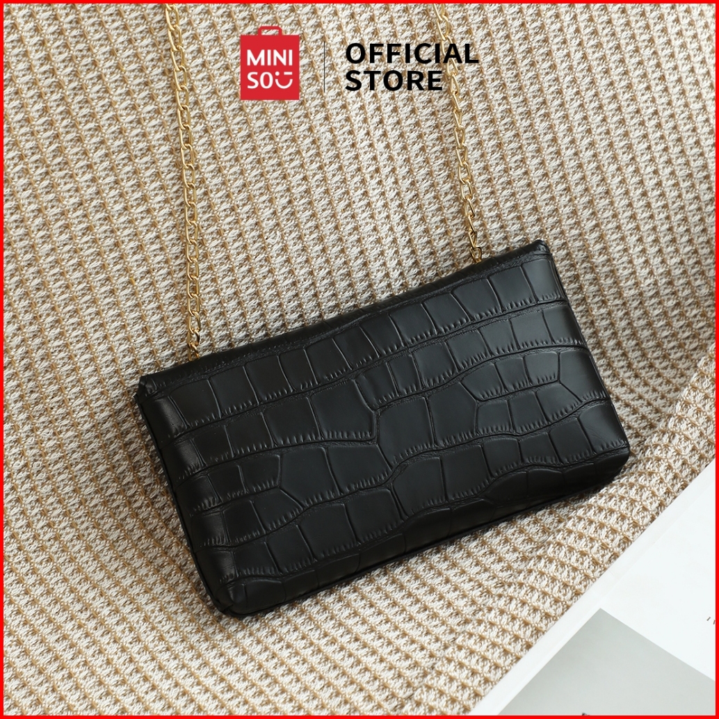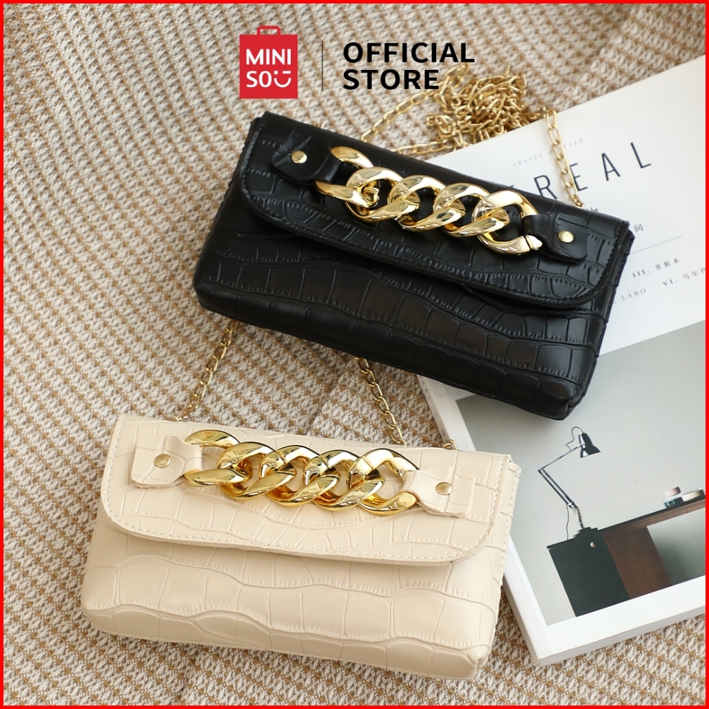 Miniso Tas Selempang Crossbody Bag With Chain Tutup Pola Batu Dekorasi Tautan Perangkat Keras Mode Dompet Wanita