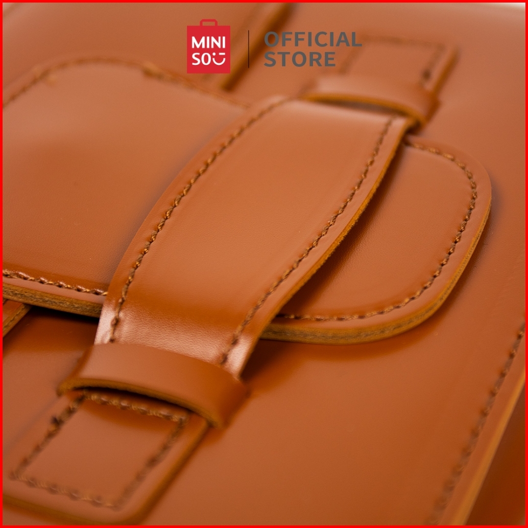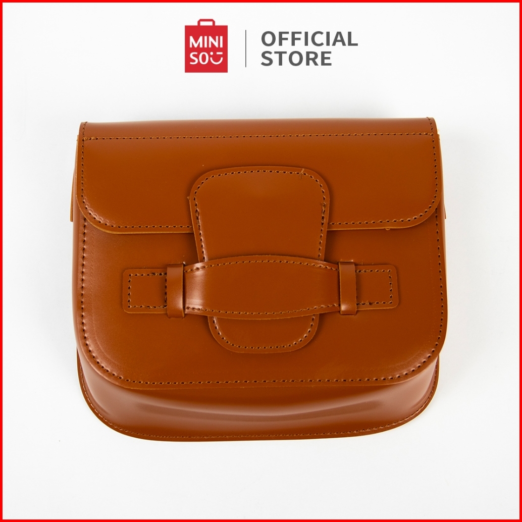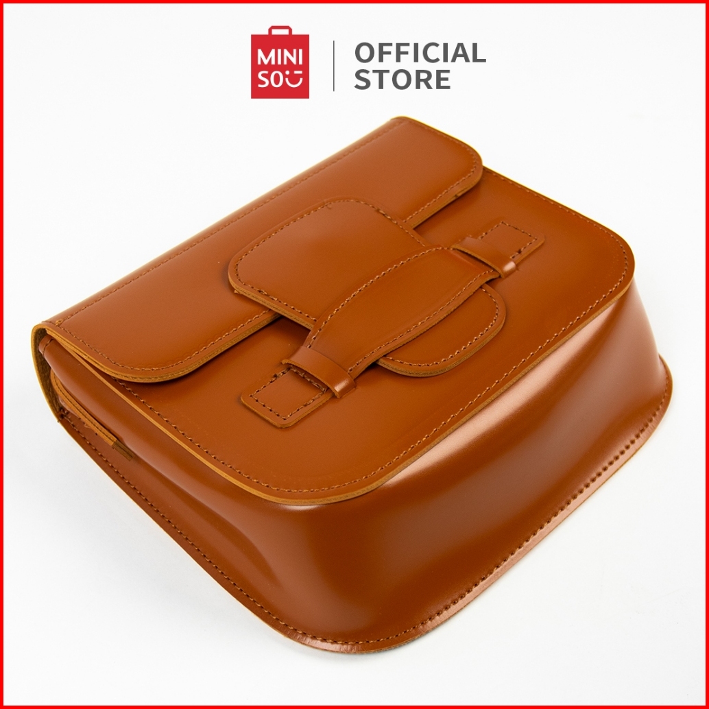 Miniso Tas Selempang Wanita Vintage Tas Saddle Retro Crossbody Bag Tas Pundak Simple Retro Gesper Magnet Pvc Desain Taha