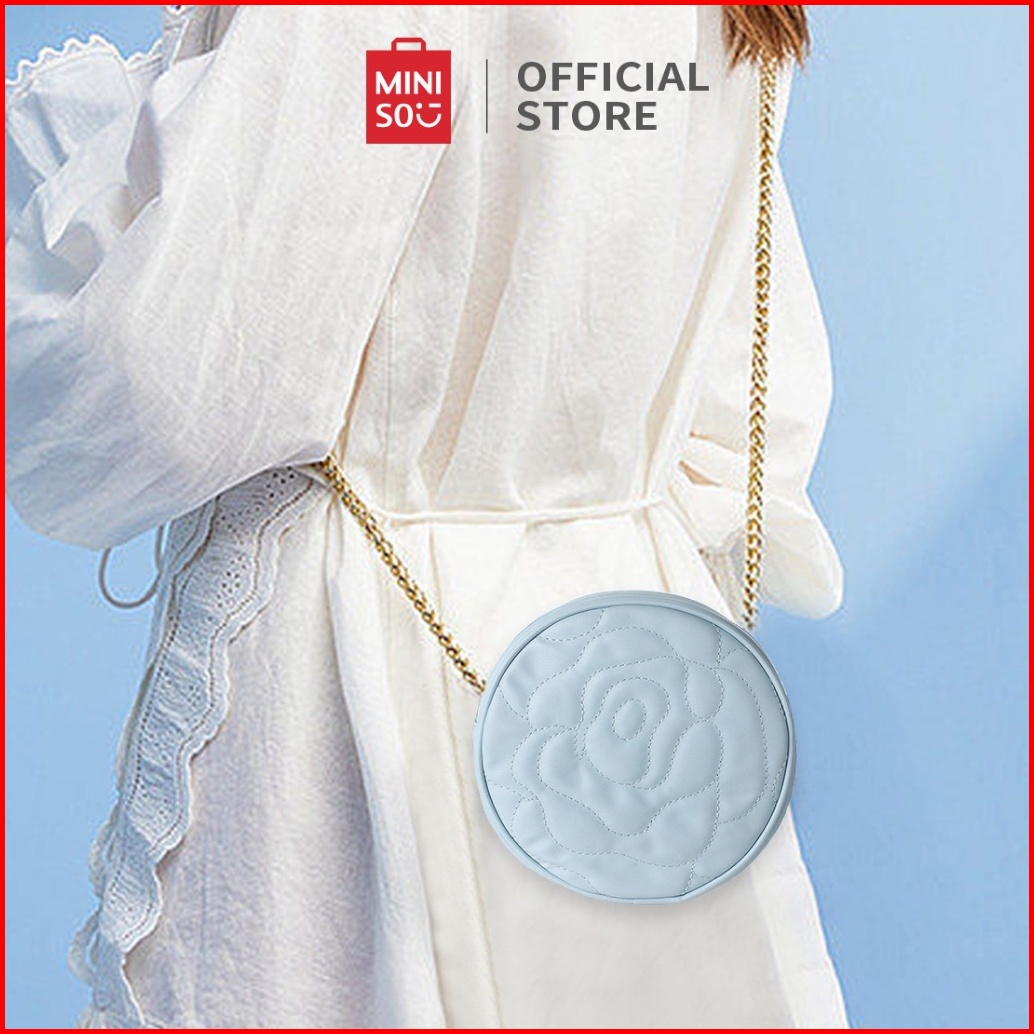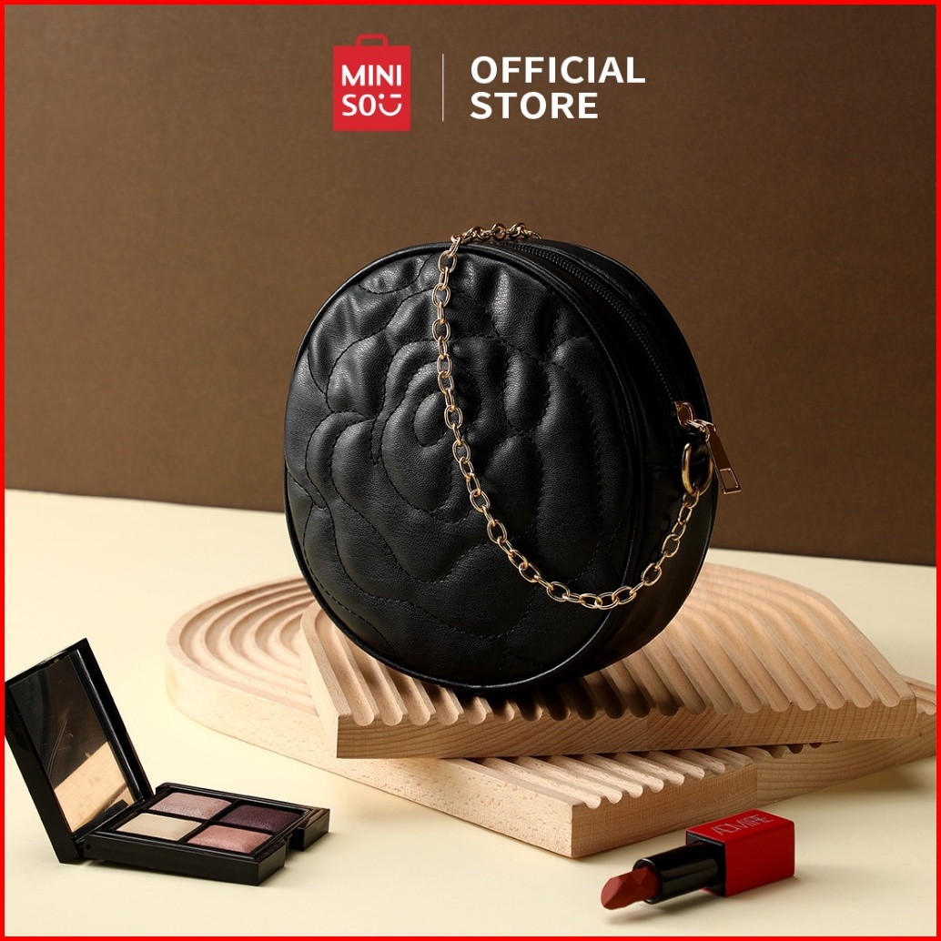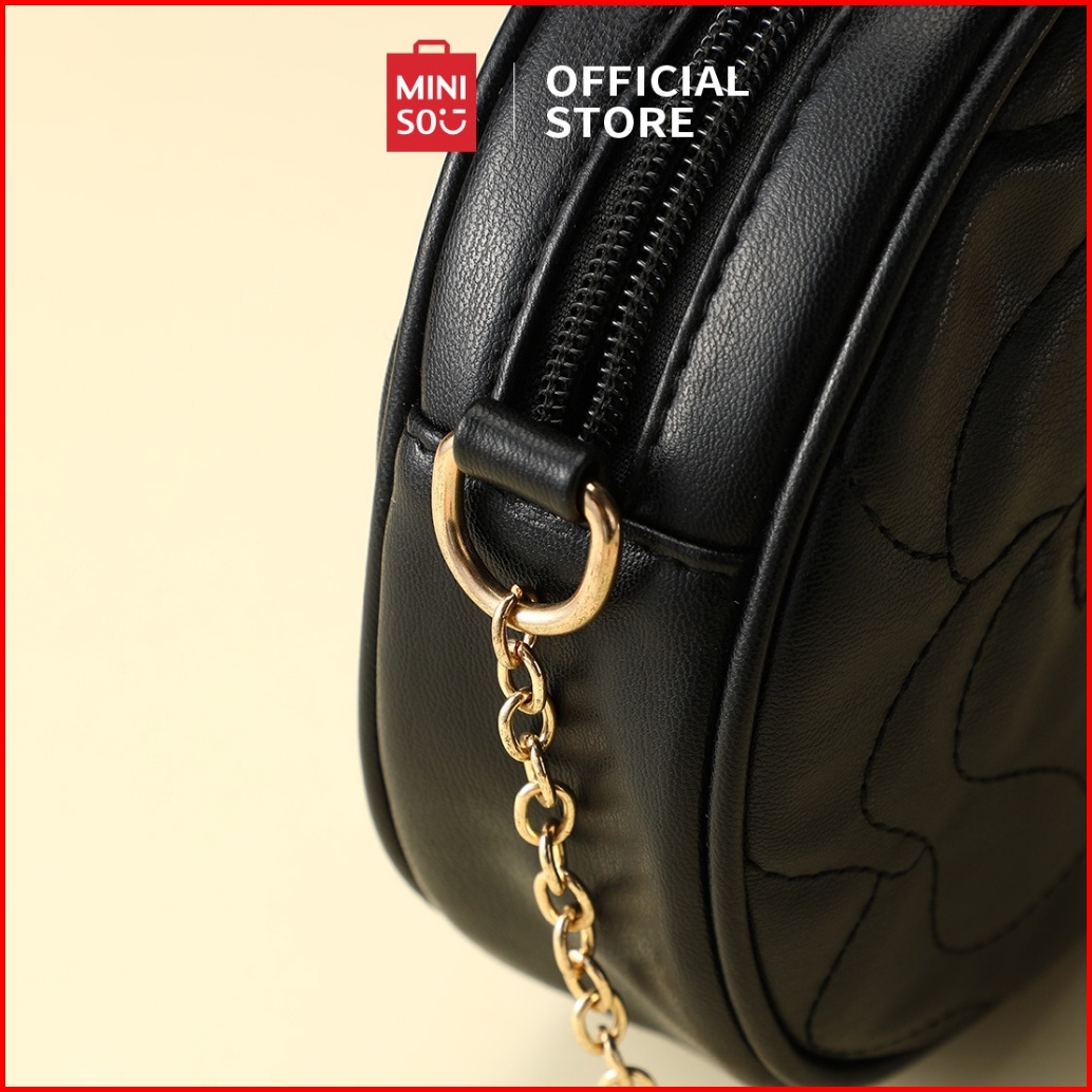 Miniso Tas Selempang Crossbody Bags Tas Wanita Hitam Rantai Mode Crossbody Bulat Klasik Elemen Mawar Yang Unik Messenger
