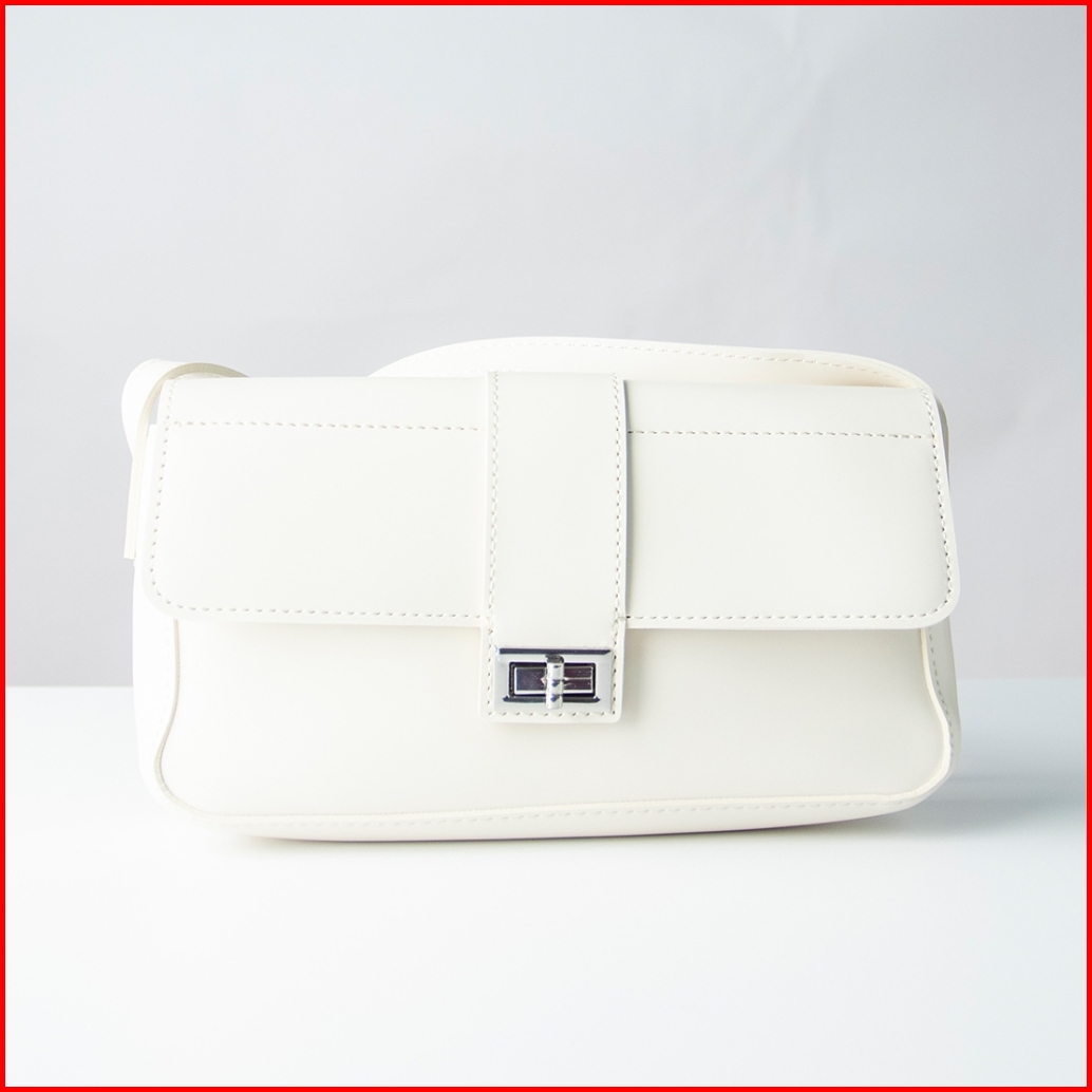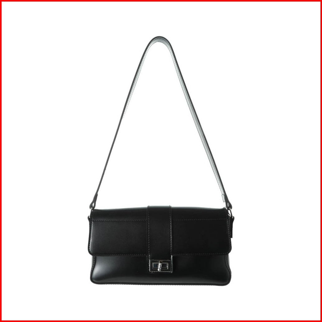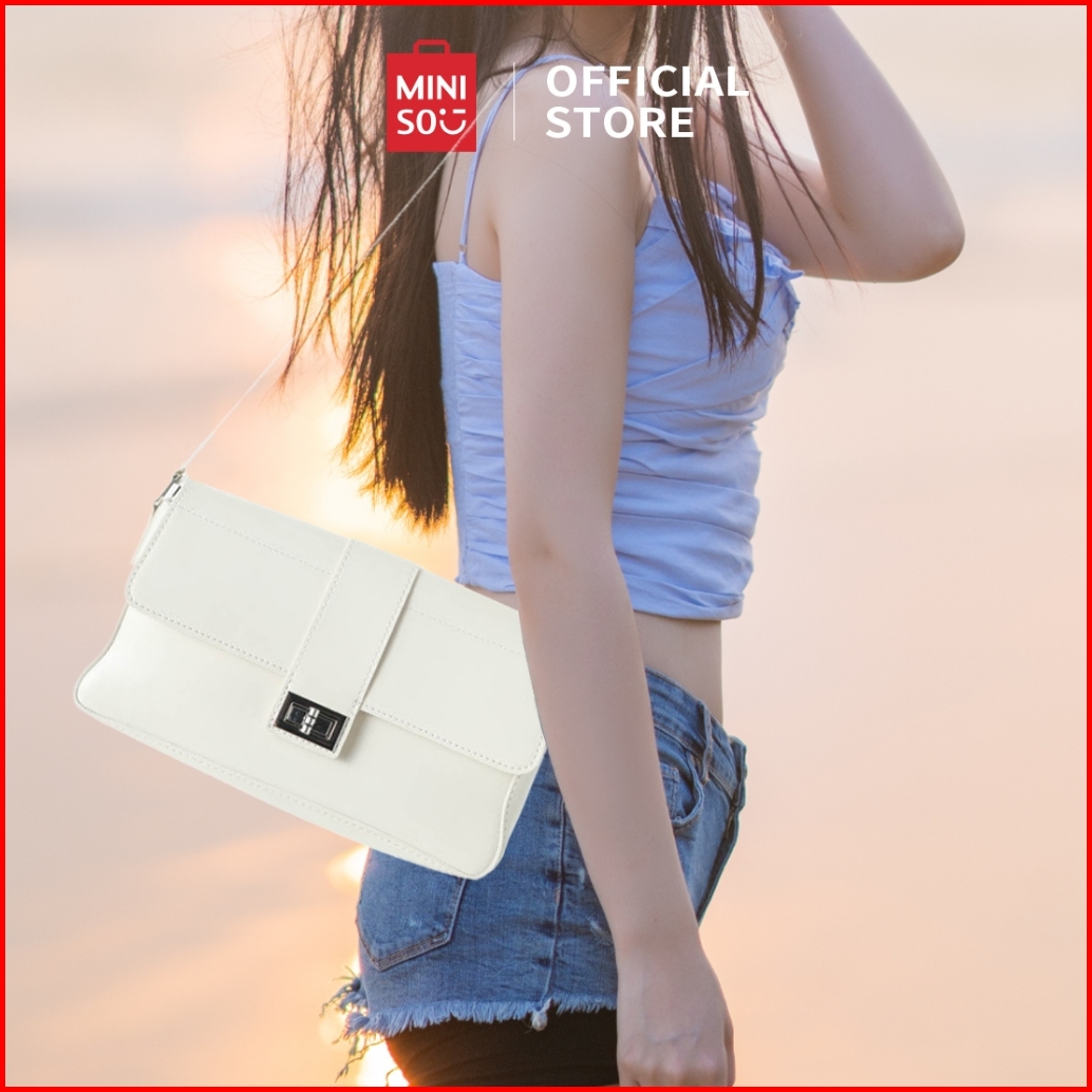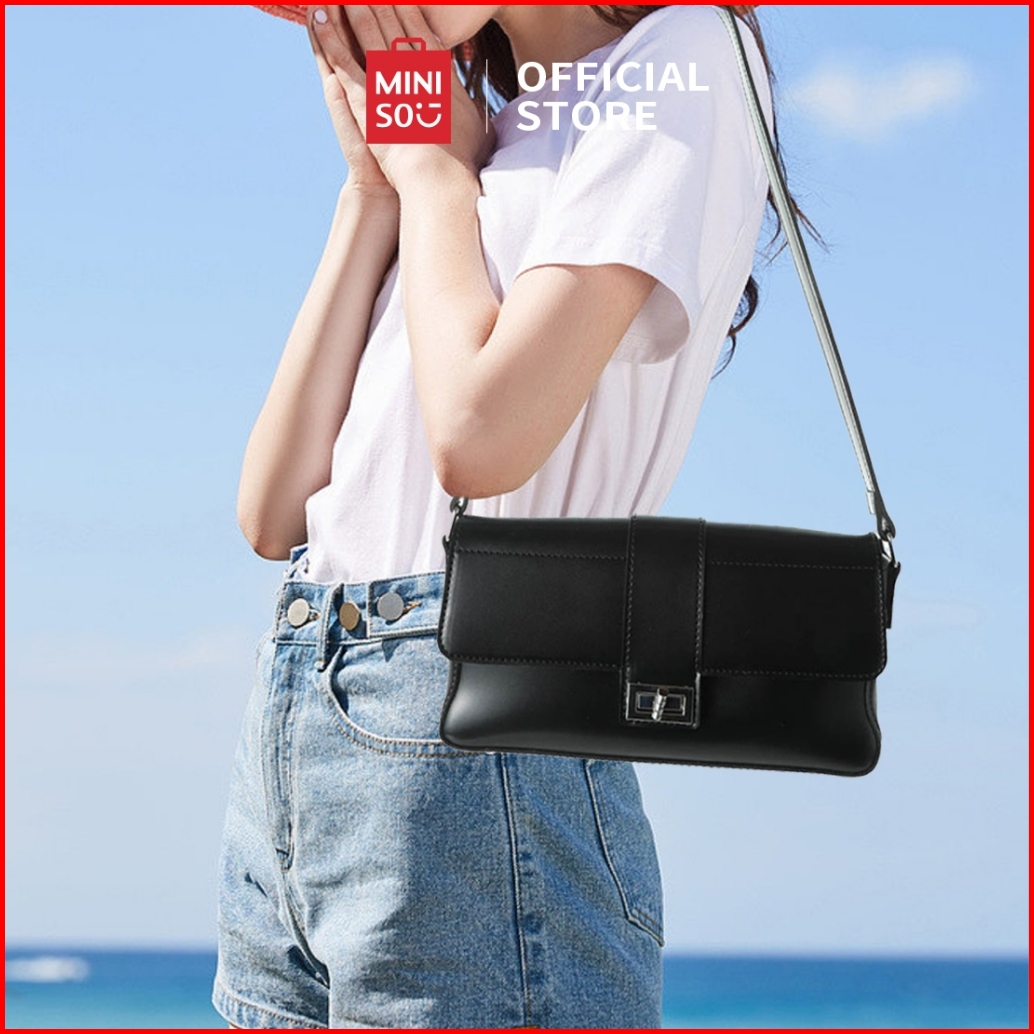 Miniso Tas Pundak Wanita Vintage Fashion Shoulder Bag Tas Penutup Persegi Panjang Warna Solid Retro Klasik Tas Hitam Wan