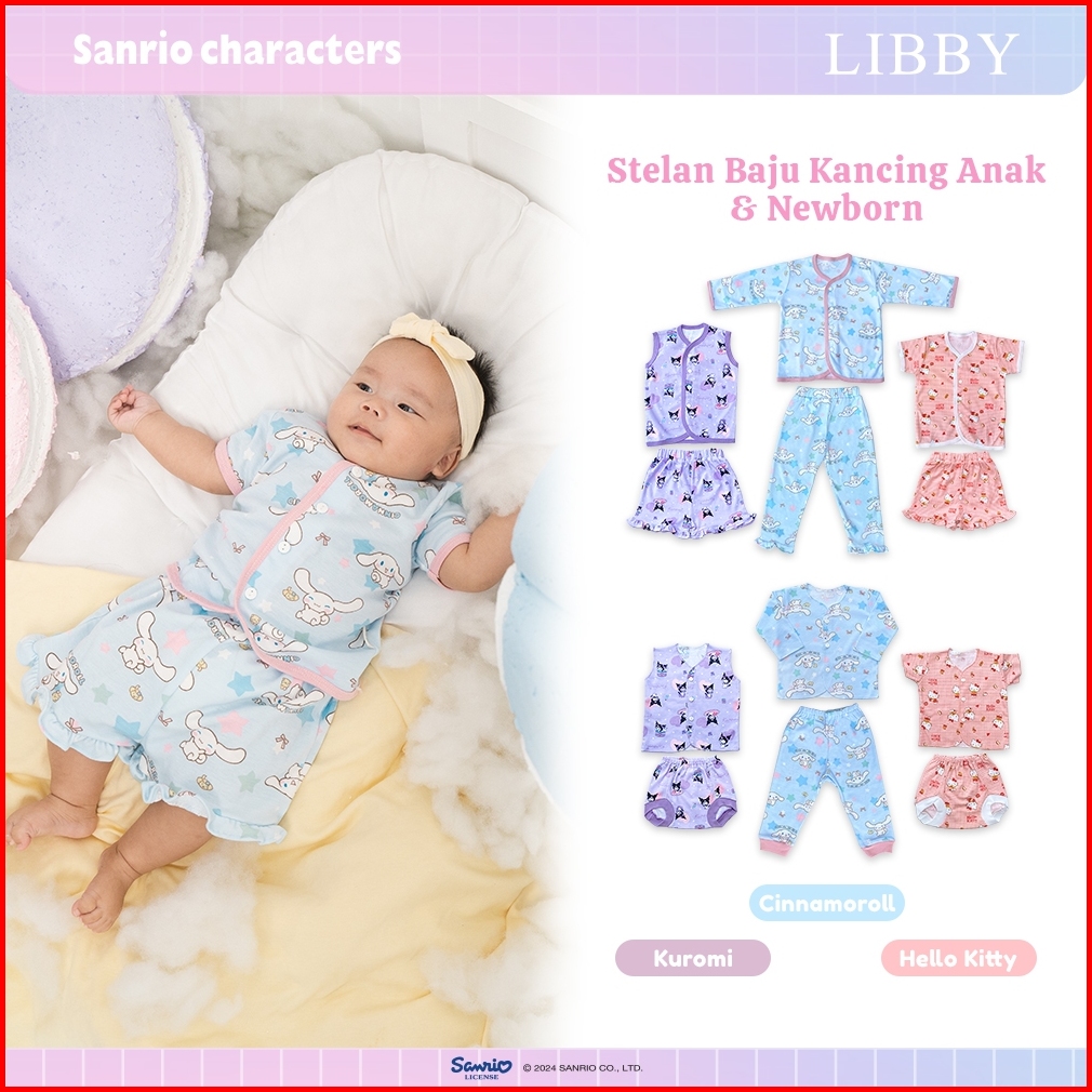 Libby Sanrio Setelan Piyama Baju Kancing Newborn Bayi Anak Kecil Perempuan Kuromi Cinnamoroll Hello Kitty 1 Stel
