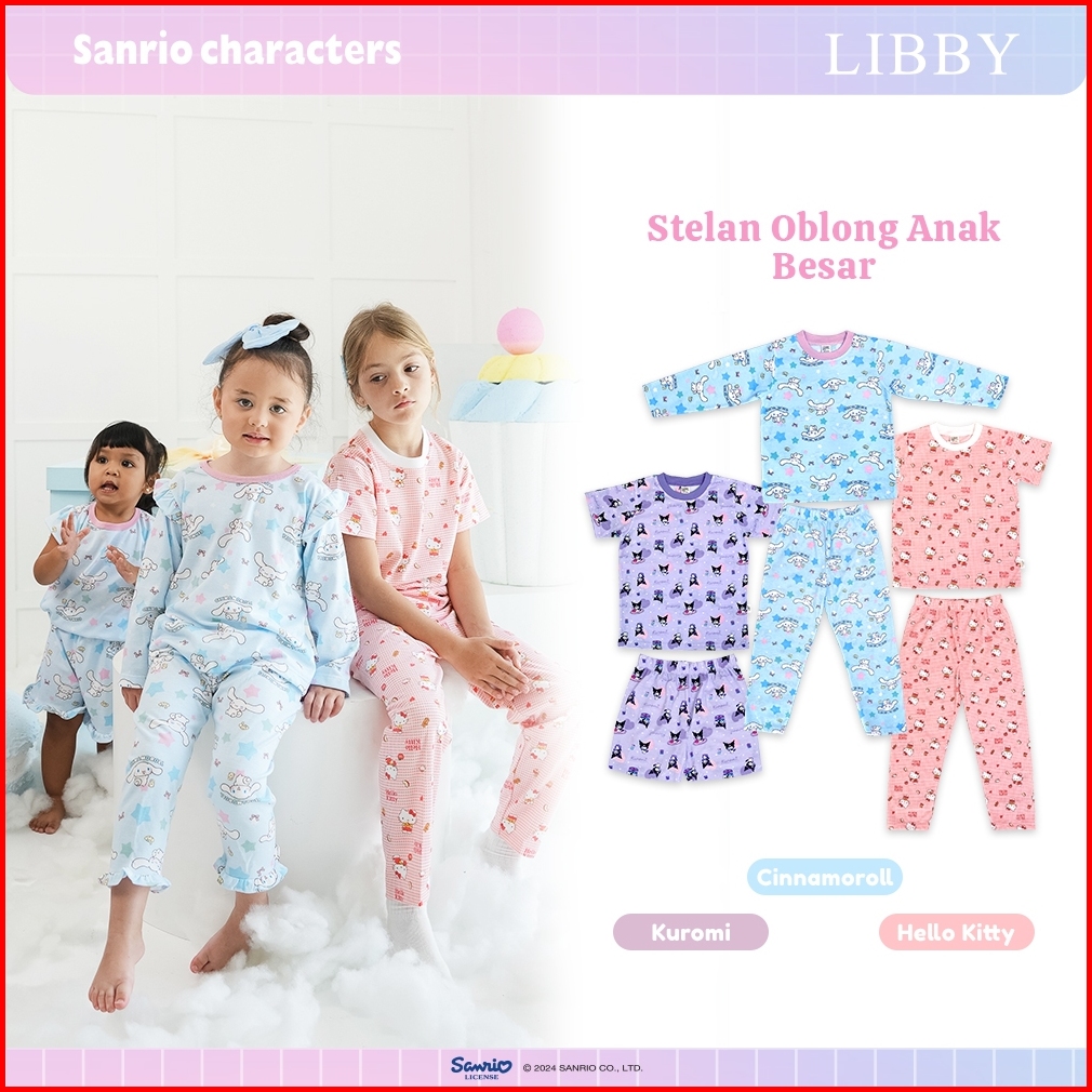 Libby Sanrio Setelan Piyama Anak Besar Perempuan Kuromi Cinnamoroll Hello Kitty 1 Stel