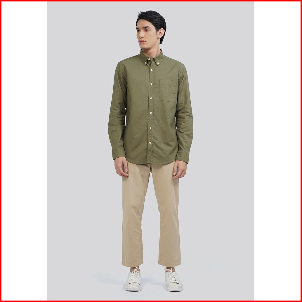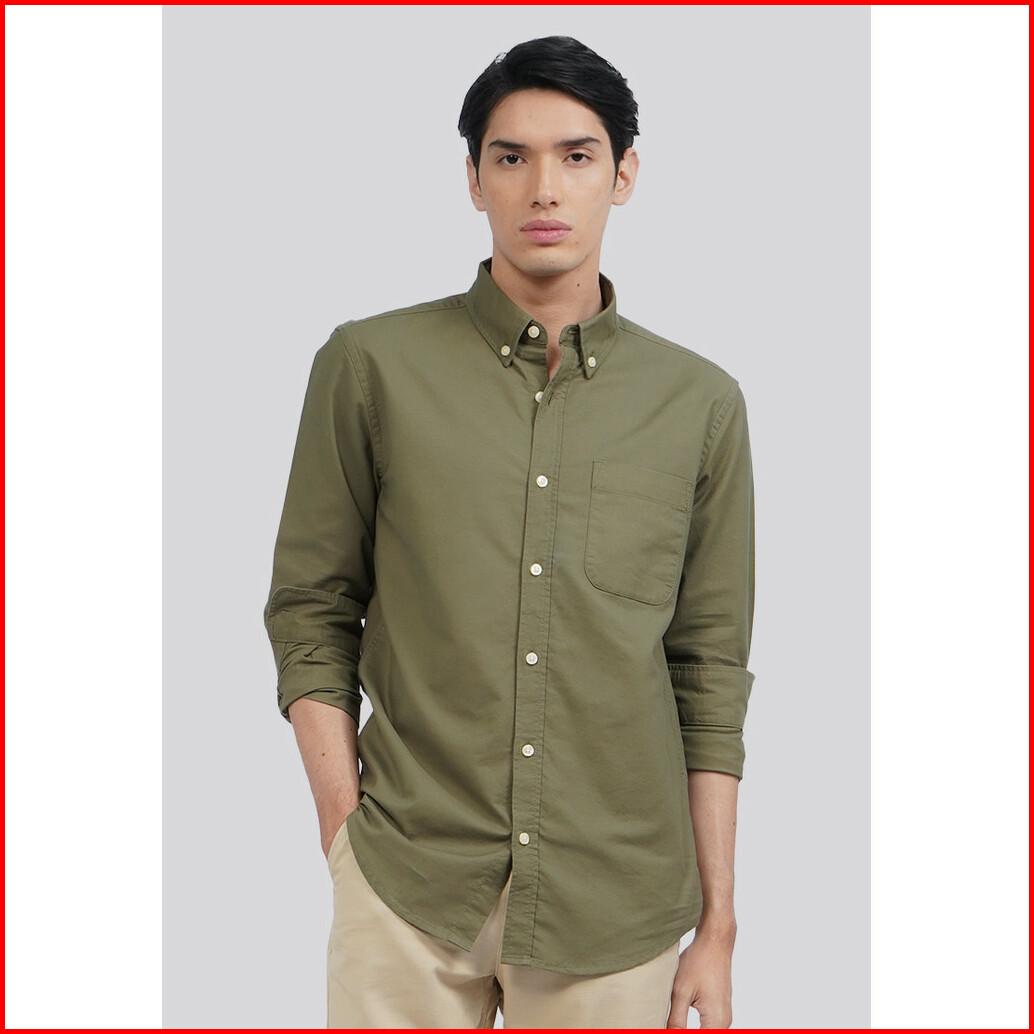 Executive Regular Fit Long Sleeve Oxford Shirt Olive