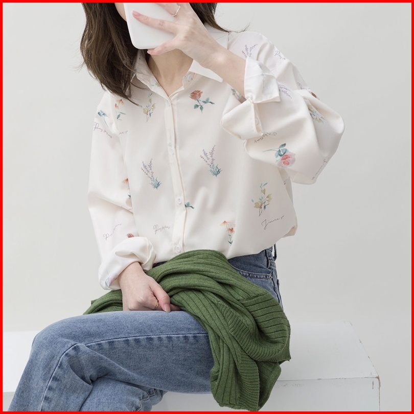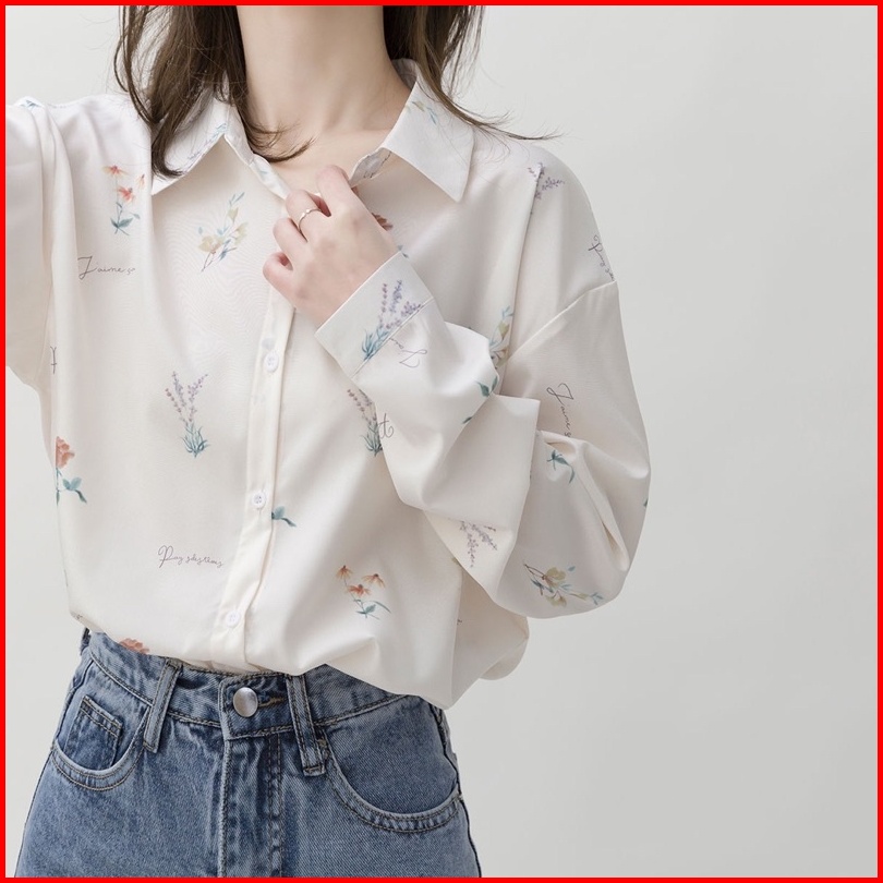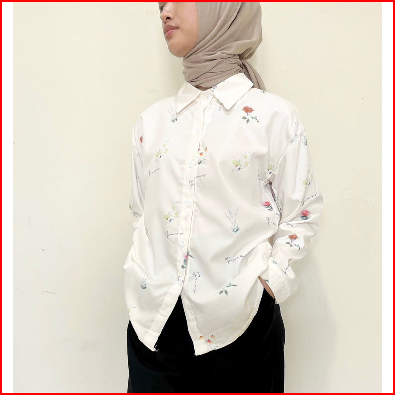 Kylie Kemeja Putih Motif Sifon Hijab Friendly Casual