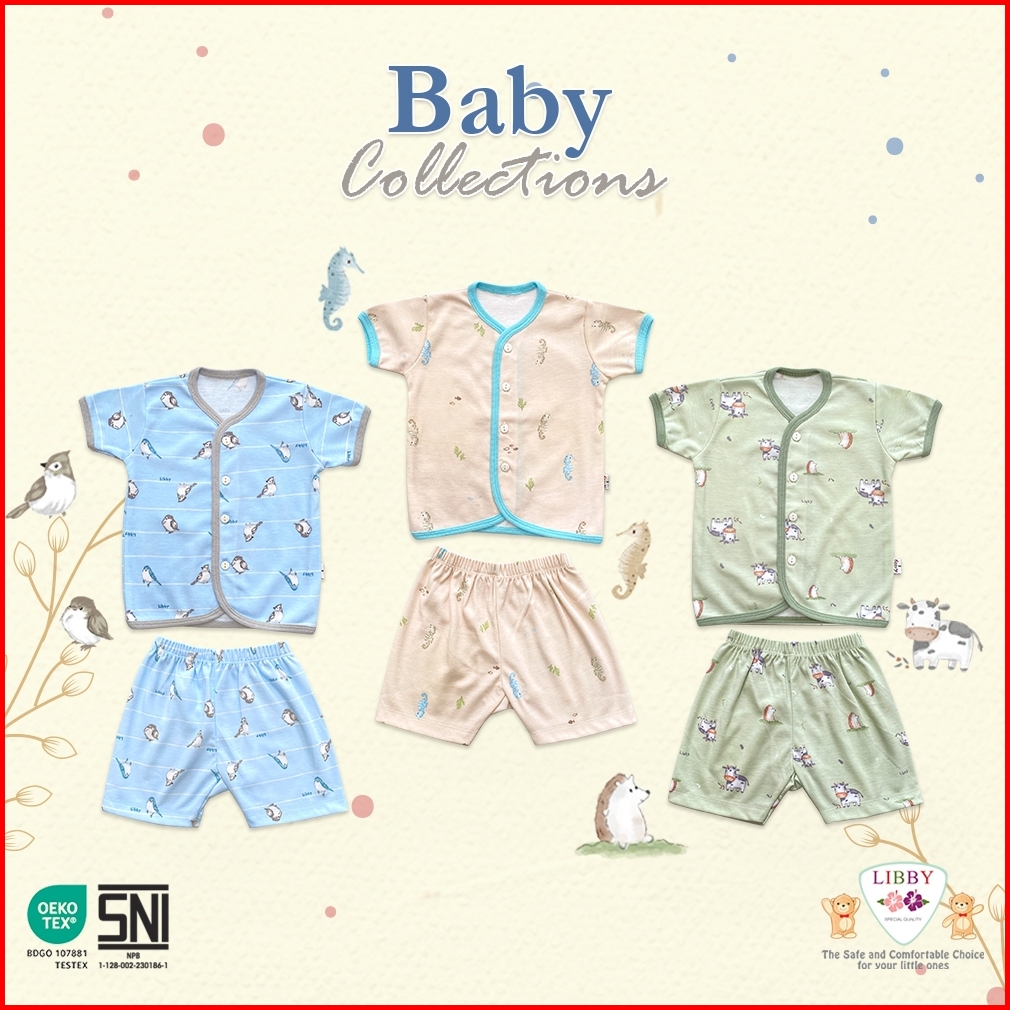 Libby Setelan Baju Pendek Anak Kecil Laki - Laki Perempuan Motif Timeless Collection 1stel