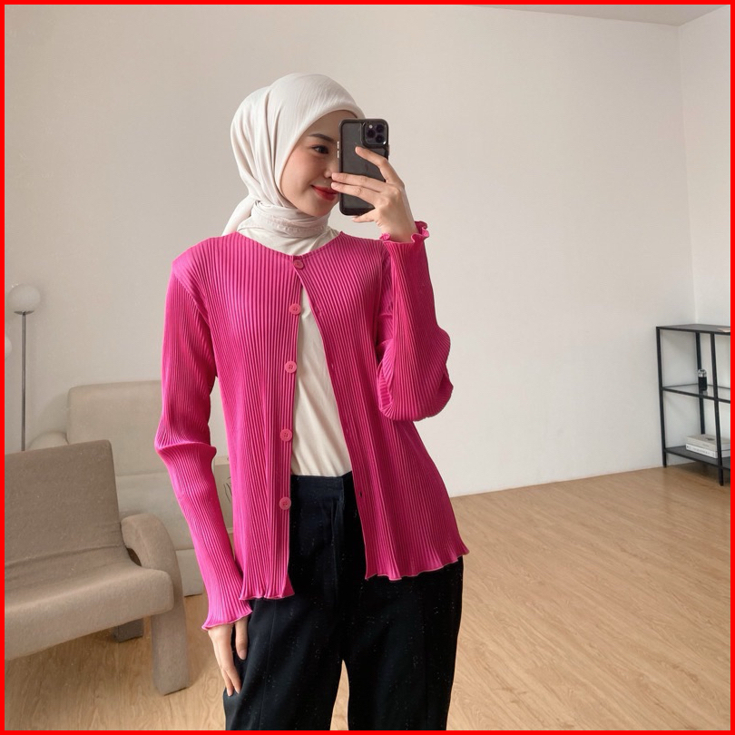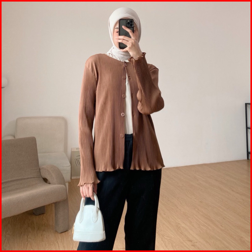 Cardigan Plisket Lidi Wavy Outer Plisket Wavy Cardigan Wavy Pleated Cardigan