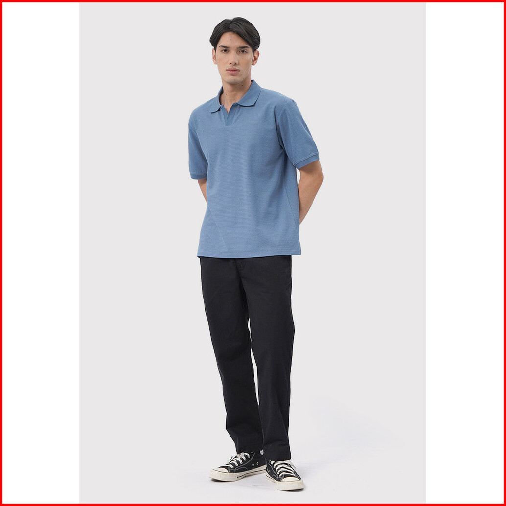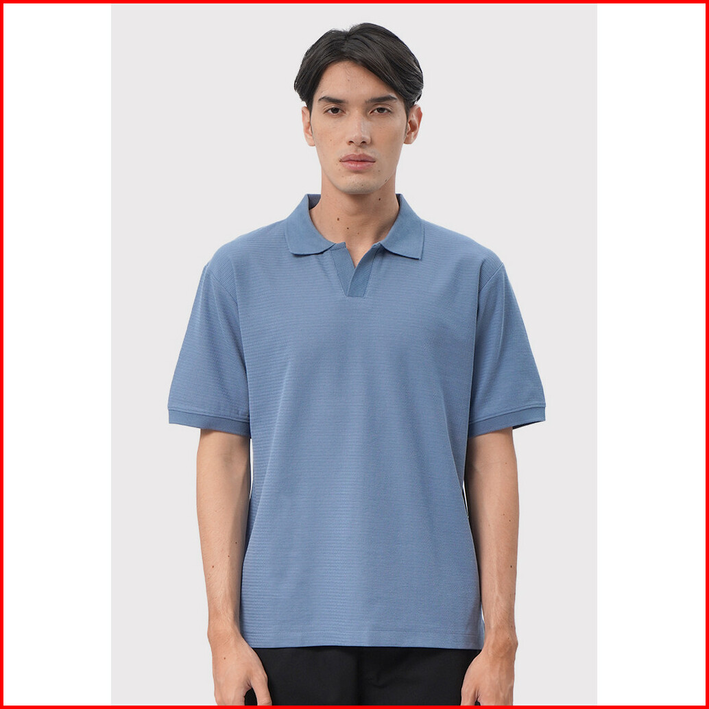 Executive Short Sleeve Textured Polo Shirt Steel Blue