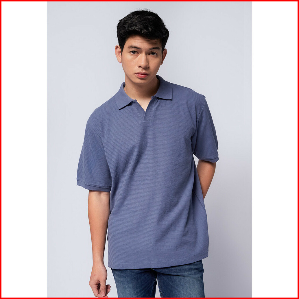Executive Short Sleeve Textured Polo Shirt Dusty Blue