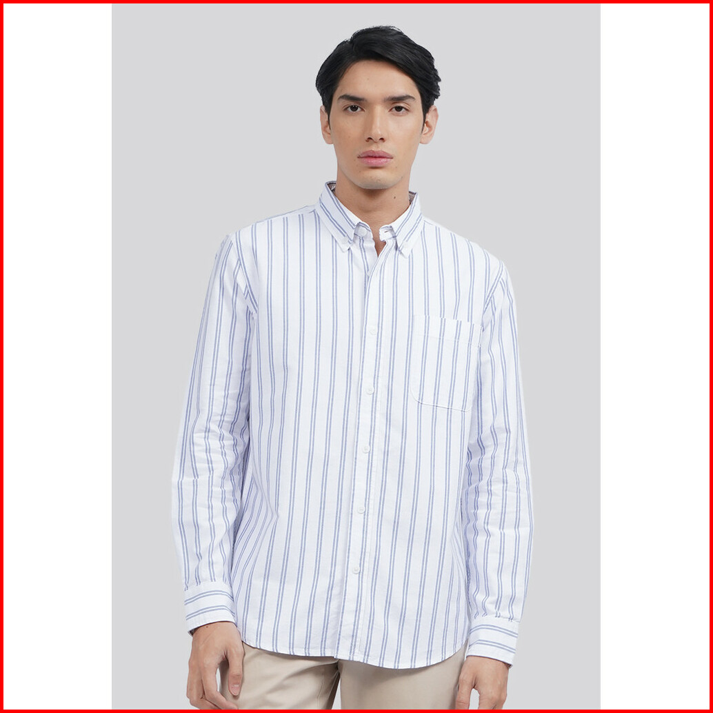 Executive Long Sleeve Oxford Stripe Shirt Blue