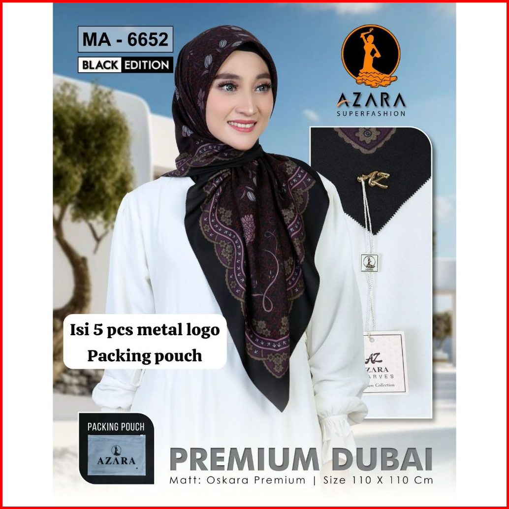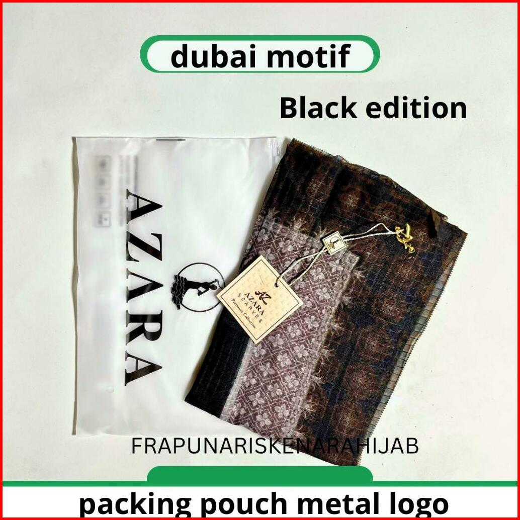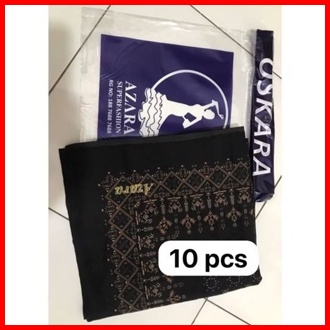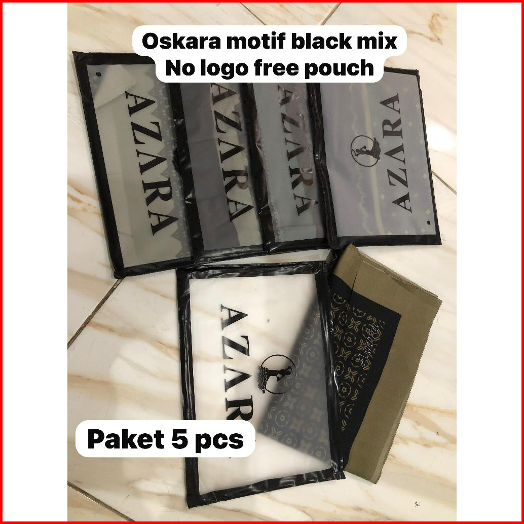 10pcs Hijab Segi Empat Voal Oskara Motif Black Edition Laser Cut Metal Logo Free Pouch By Azara