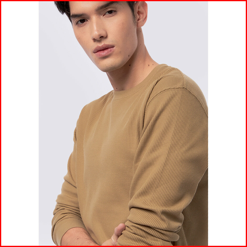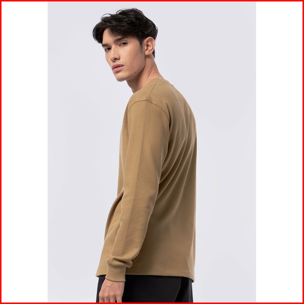 Executive Regular Fit Long Sleeve Waffle T-shirt Khaki