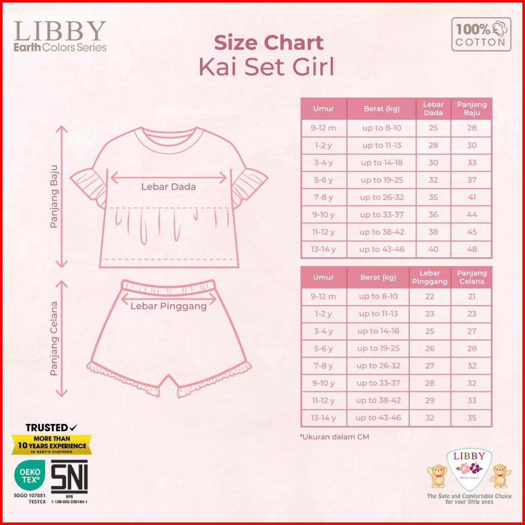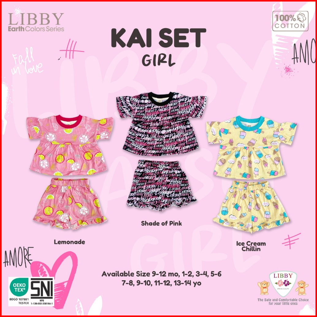 Libby Setelan Anak Perempuan Kaos Peplum Katun Usia 9 Bulan - 14 Tahun 1 Stel Kai Set Girl