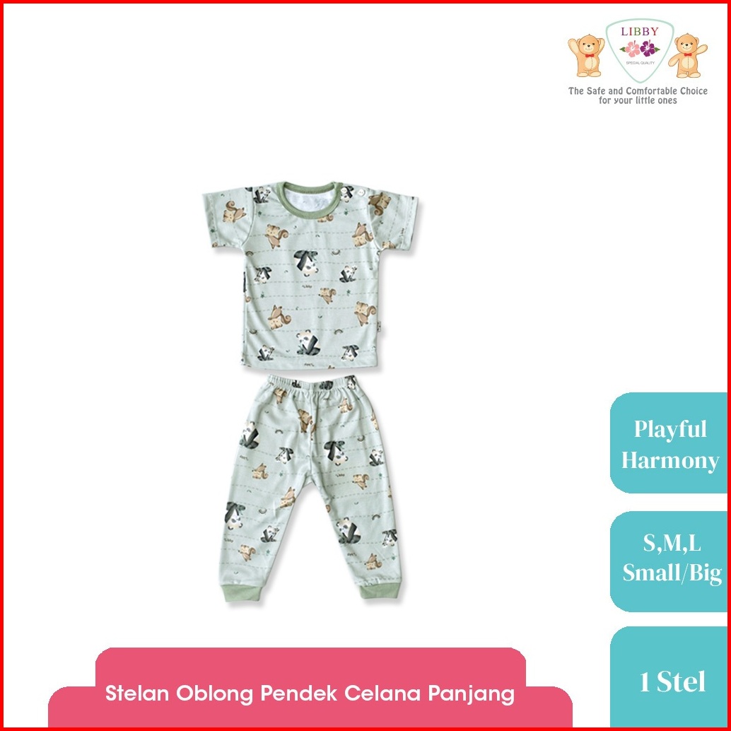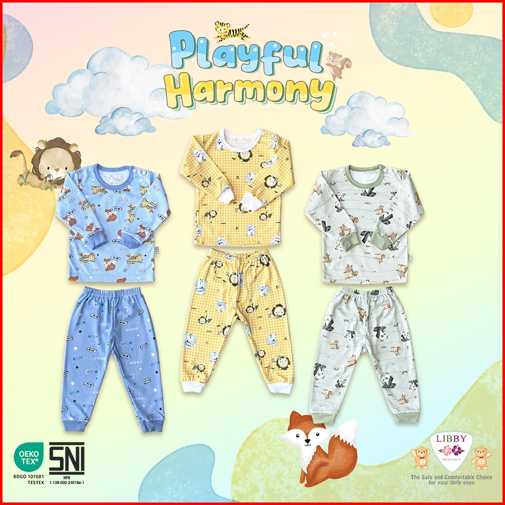 Libby Setelan Piyama Panjang Anak Laki Laki Perempuan Motif Playful Harmony 1 Stel