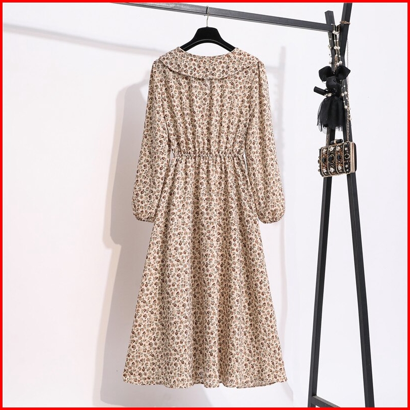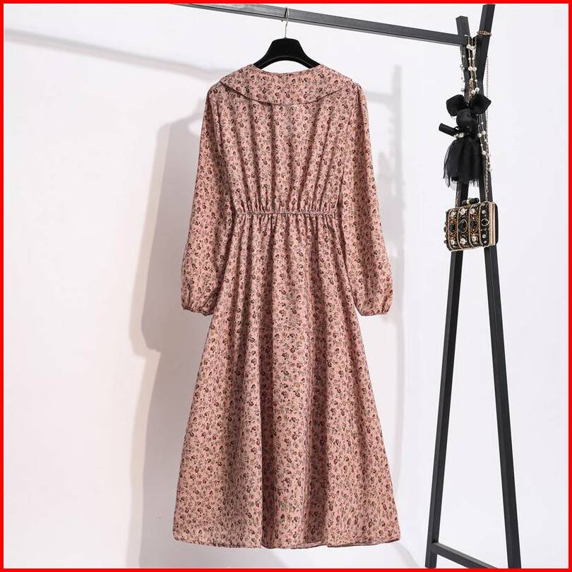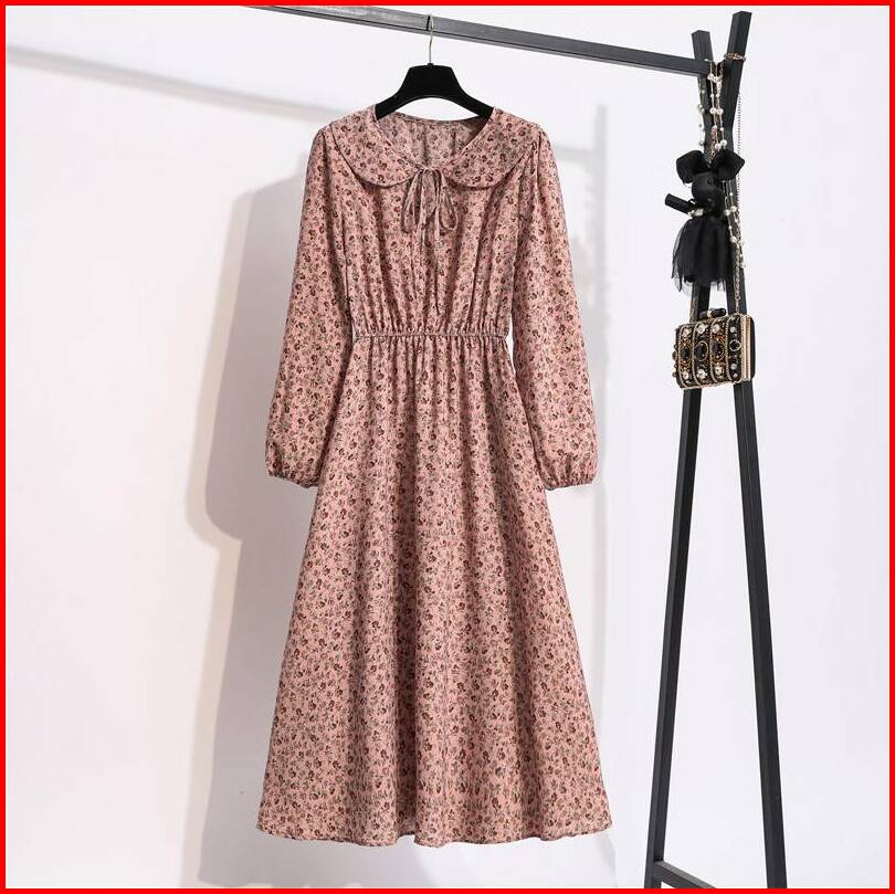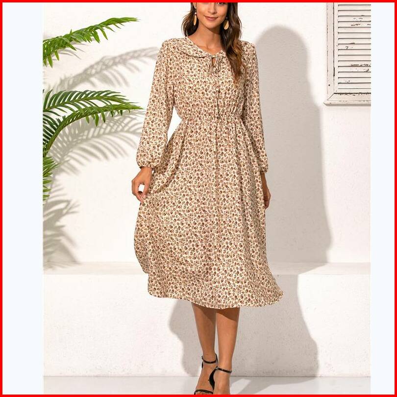 Bebovizi Gaun Maxi Casual Wanita Lengan Panjang Dengan Bahan Sifon Motif Floral Dan Bergaya Elegan