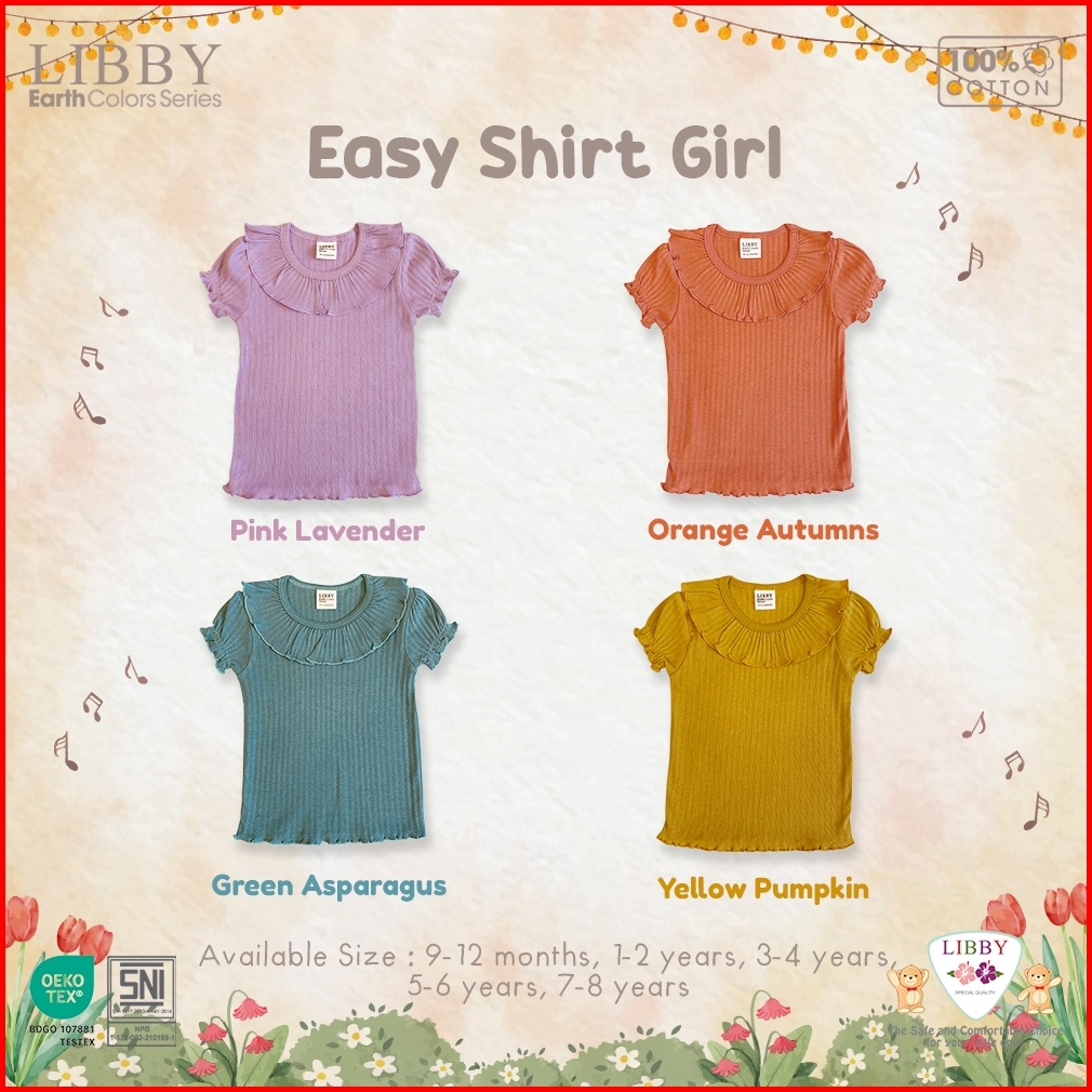 Libby Atasan Anak Perempuan Ruffle Kaos Polos Easy Shirt Girl Usia 9 Bulan - 14 Tahun 1pcs