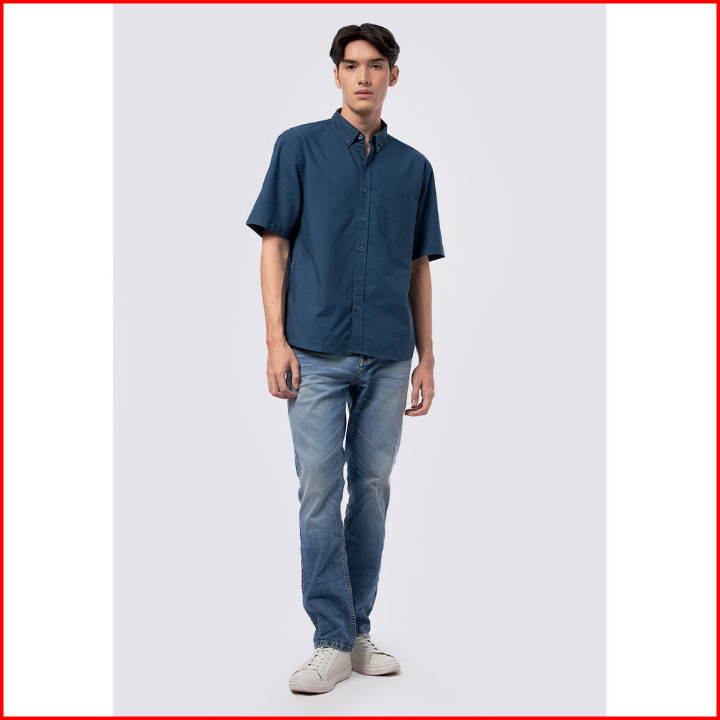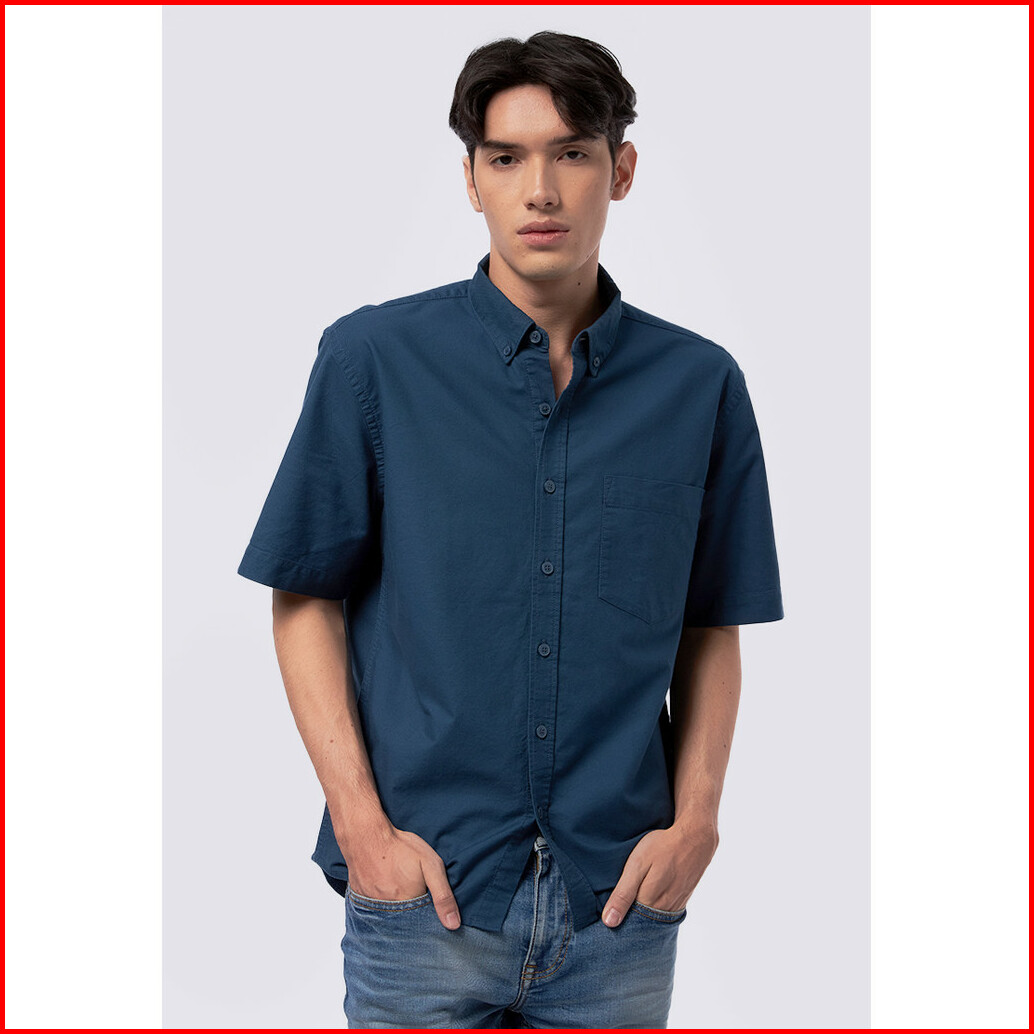 Executive Relaxed Fit Short Sleeve Oxford Shirt Tidal Blue