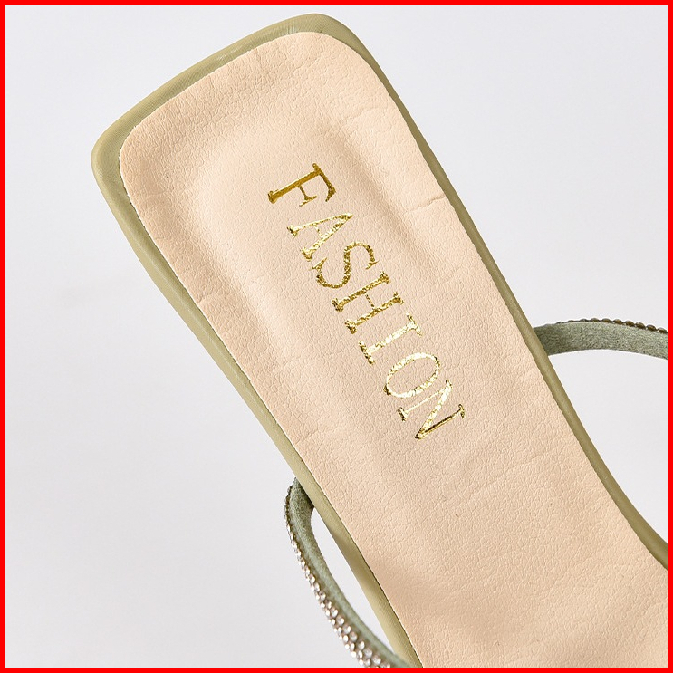 Sandal Berlian Imitasi Wanita Baru Bagus Sandal Sandal Tumit Tinggi Ujung Terbuka Wanita Setengah Seret