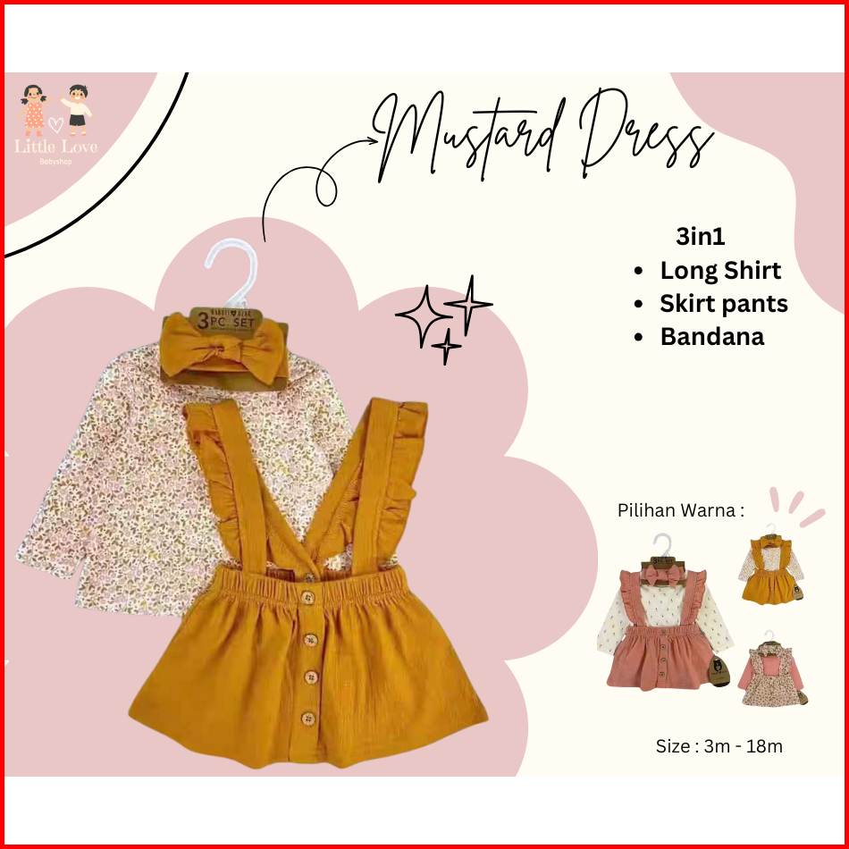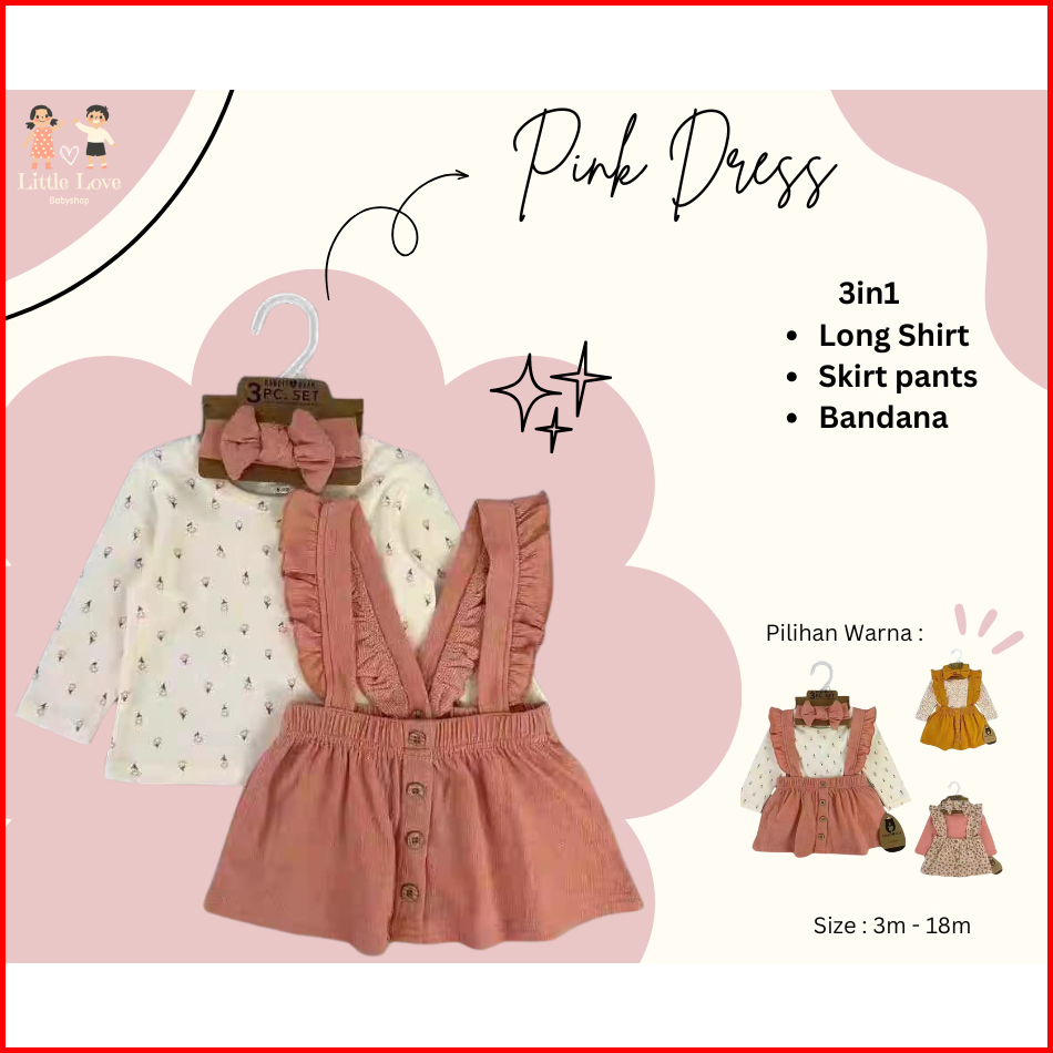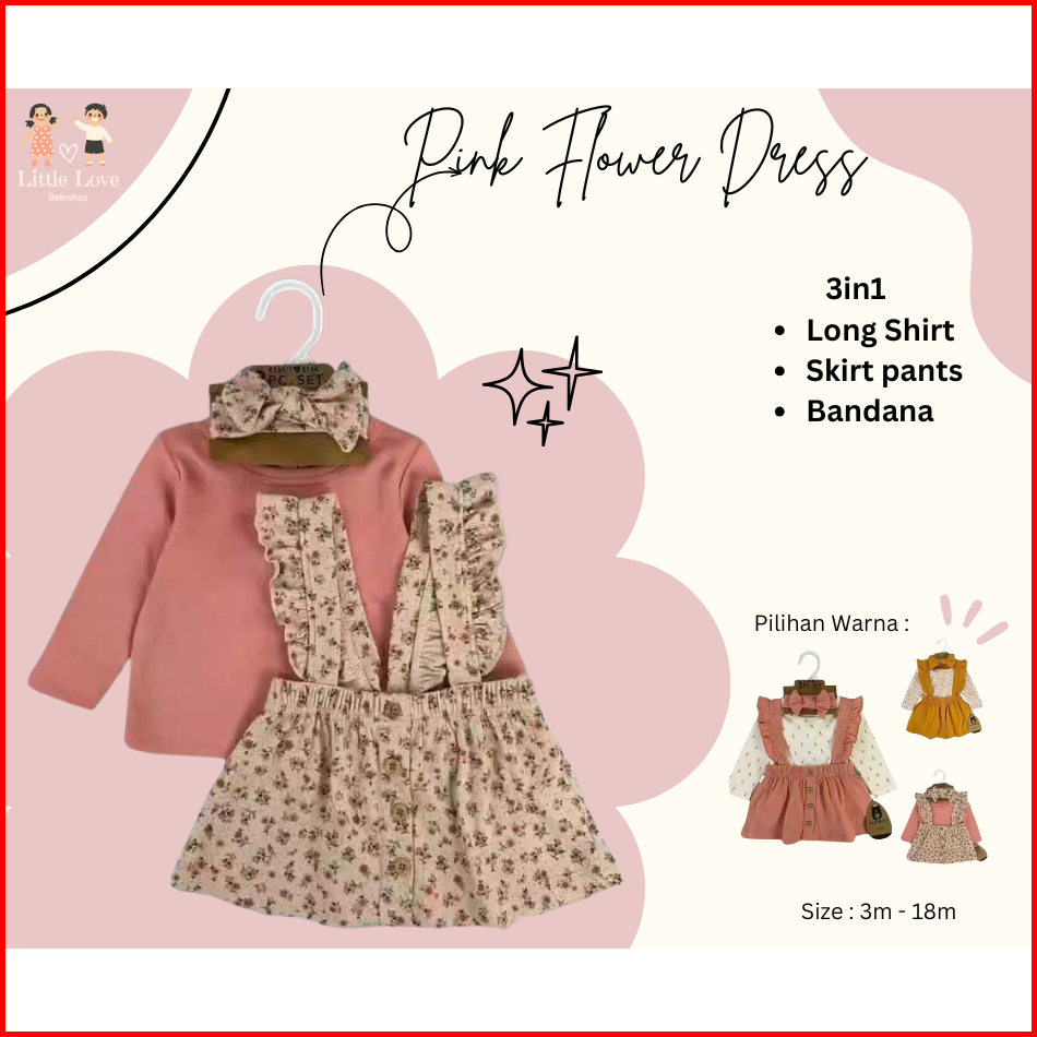 Little Love Baby Flower Dress Set Bando Gift Set Anak Bayi Perempuan Baju Dress Bayi Dengan Bando Lengan Panjang Umur 3-