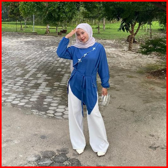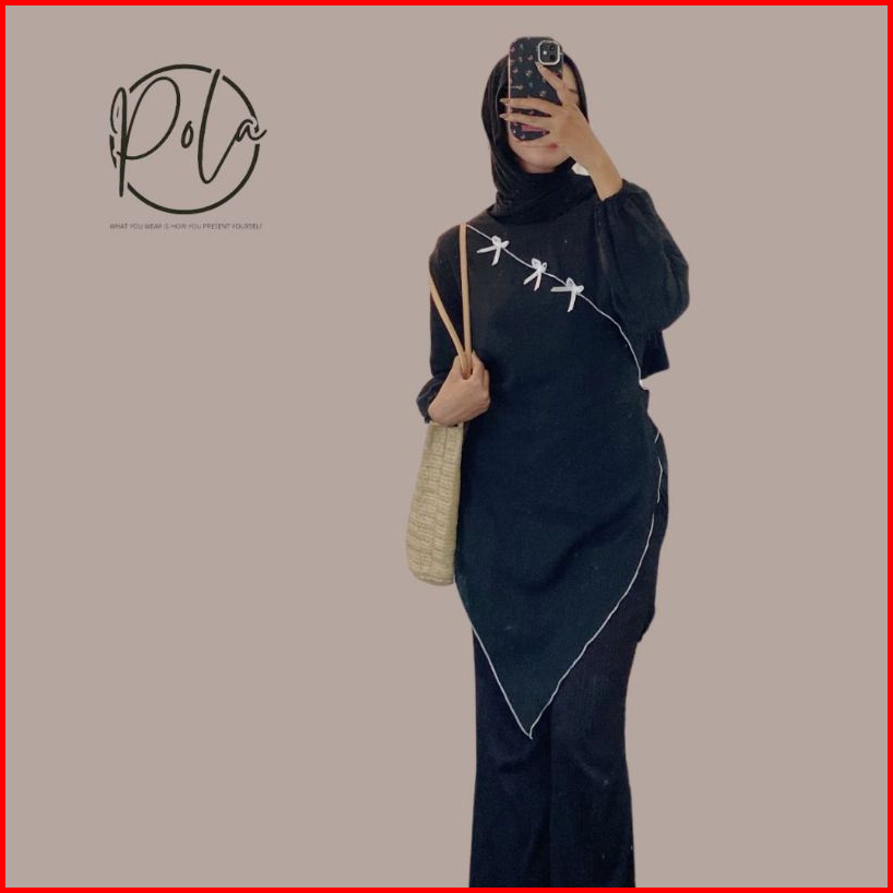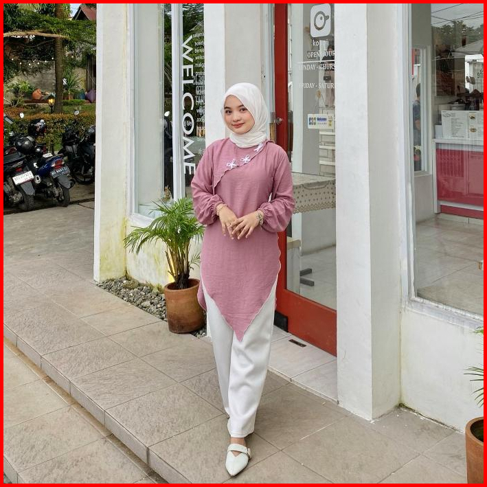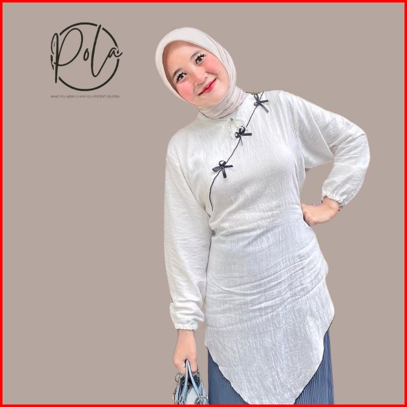 Pola Wear Naya Long Tunik Asymetris Polo Linen Atasan Wanita Girls Korean Style