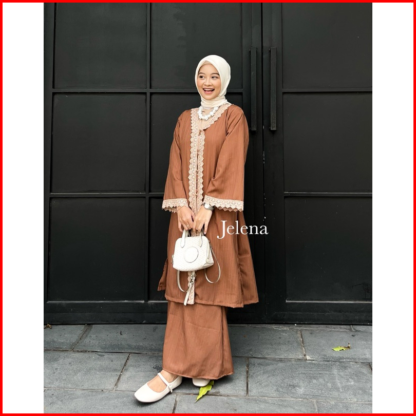 Ready Stock Jelena Tunik Rok Melayu Jelena Outfit Tunik Rok Skirt Renda Lace Busui Baju Lebaran Kondangan Lamaran