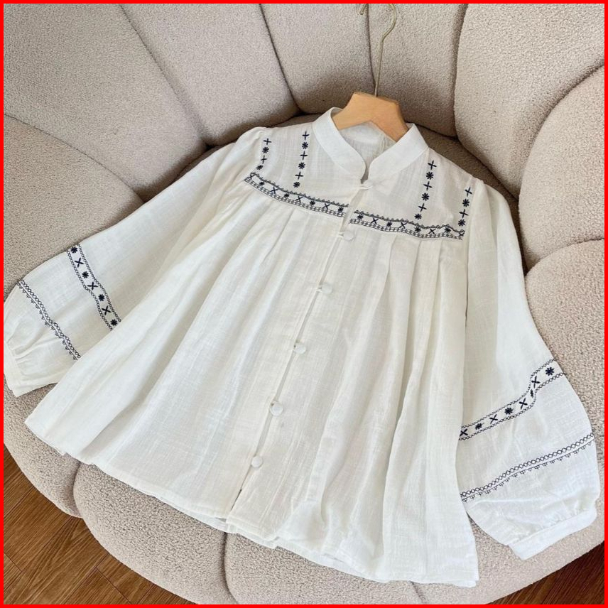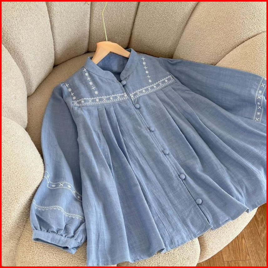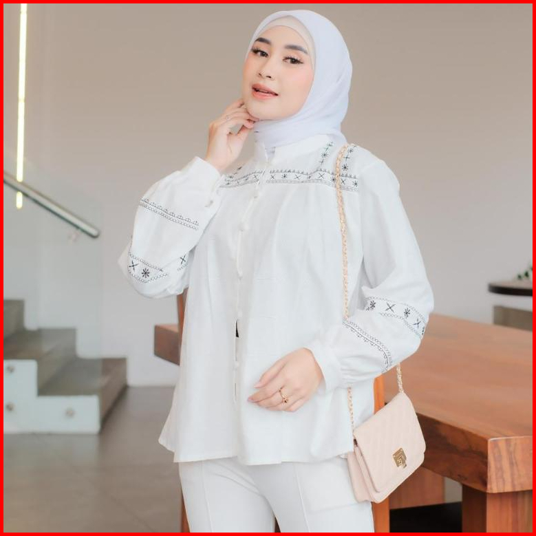 Zimi Top Atasan Remaja Wanita Korean Style Atasan Bahan Linen Rami Mix Bordir Atasan Coquette Terbaru
