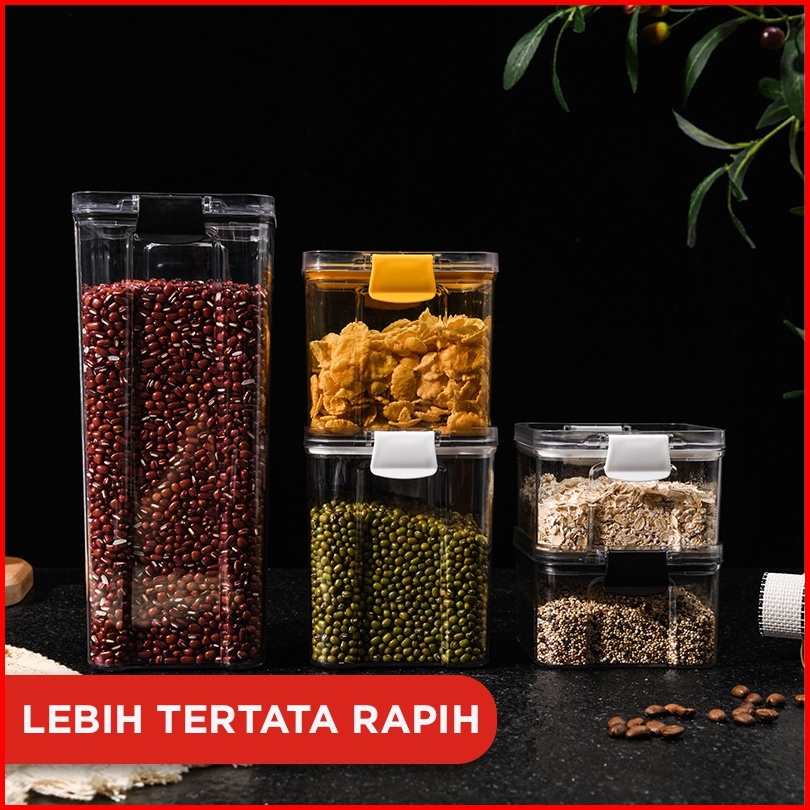 Hoptech - Toples Snack Kedap Udara Bening Kontainer Makanan Cereal Food Storage Jar 1800ml