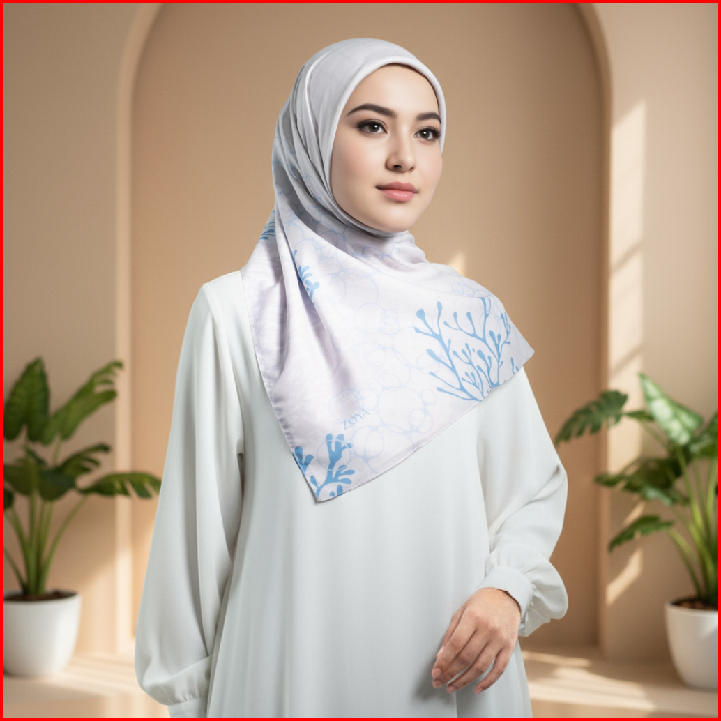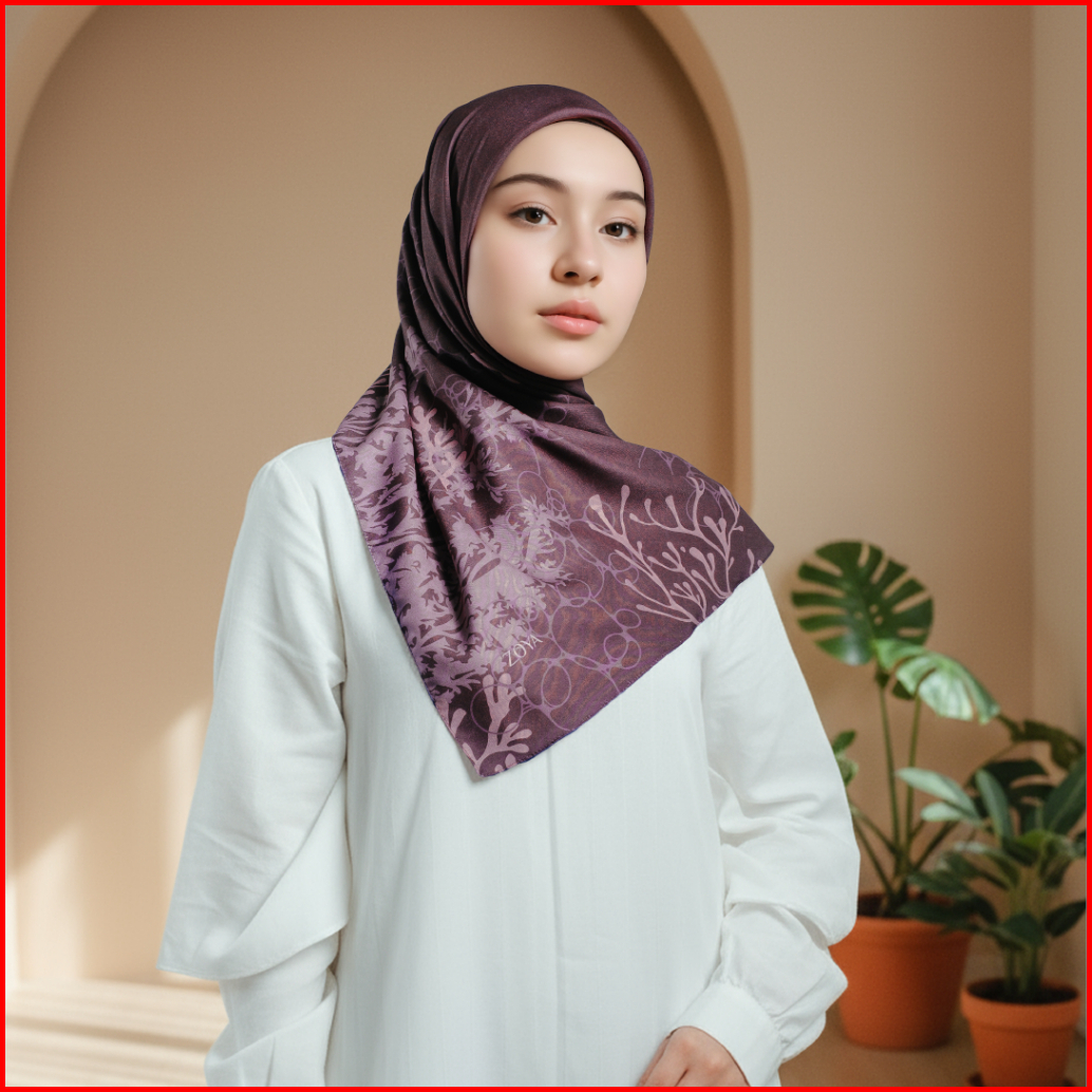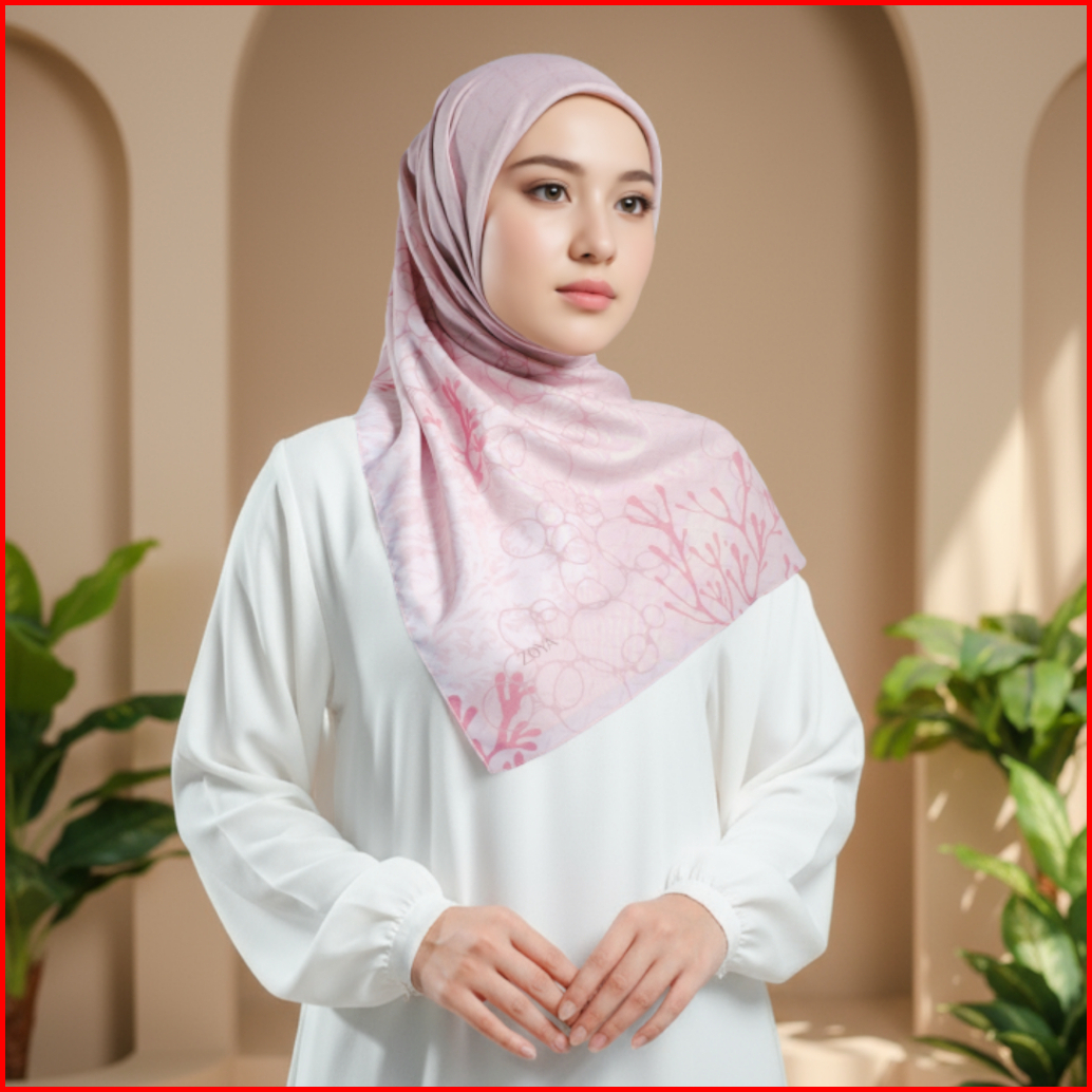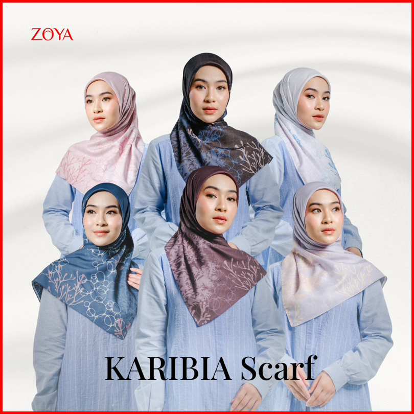 Zoya - Karibia Scarf - Kerudung Hijab Segi Empat Motif - Pouch Ziplock