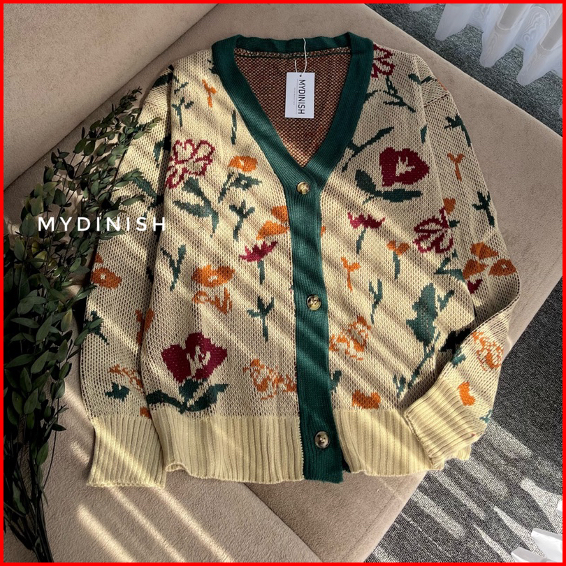Nanami Flower Cardy - Cardigan Rajut Wanita Motif Bunga