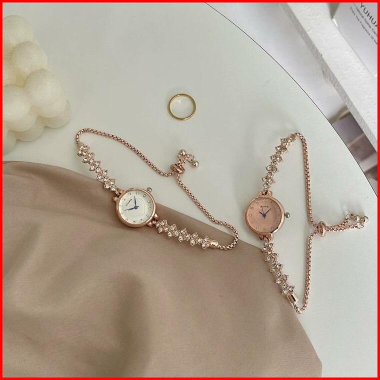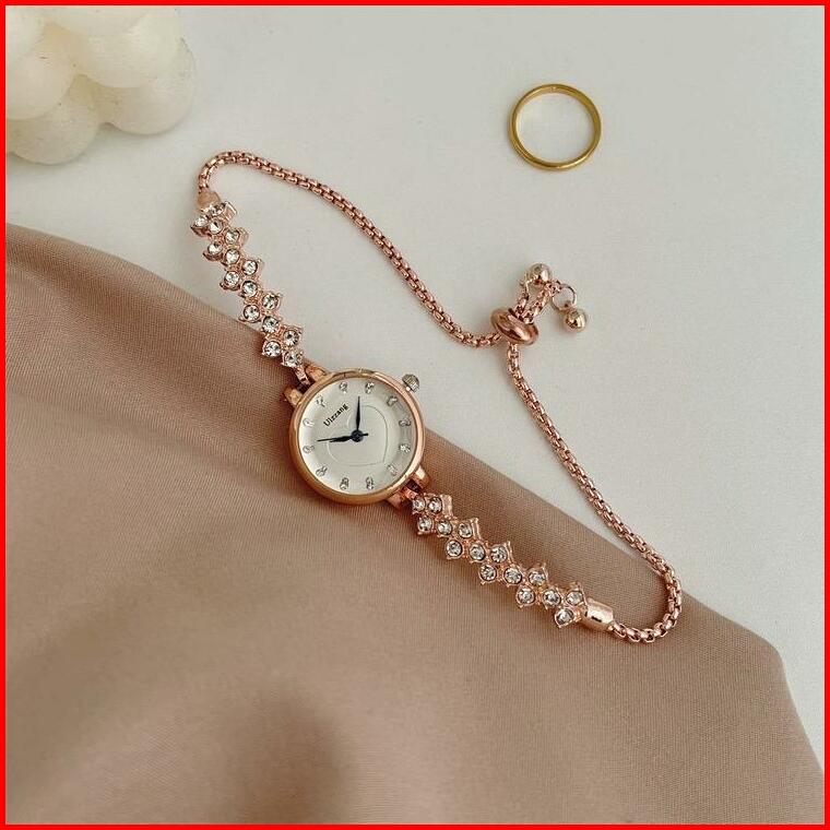Kooley - Jam Tangan Serut Ulzzang Love Tali Bunga Diamond 02 Jam Tangan Wanita Fashion